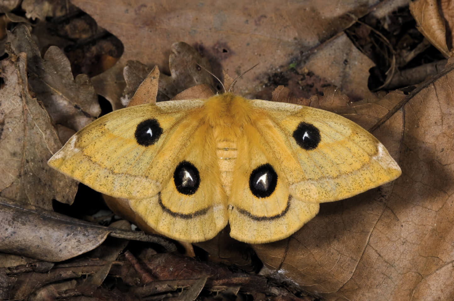 Quand les bourgeons du hêtre frémissent, la hachette n’est pas loin. Ce papillon de nuit émerge en même temps que les feuilles de son arbre hôte. On le reconnaît à des ocelles noirs et bleus avec un T blanc en forme de petite hache sur chacune de ses ailes.