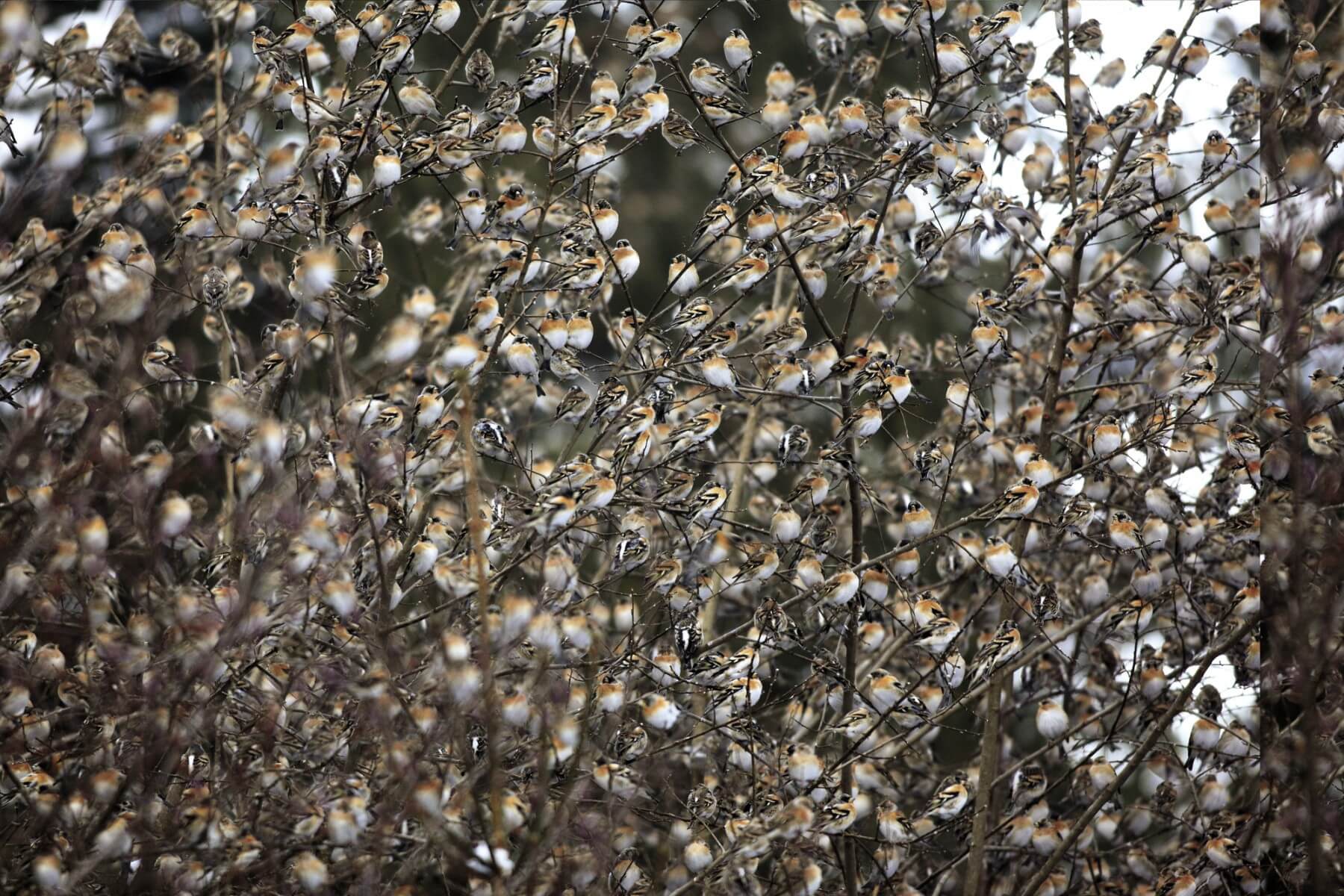 Un autre amateur de faînes rejoint le banquet en hiver. Le pinson du Nord est un passereau qui niche dans la taïga. Quand arrive la mauvaise saison, l’oiseau devient très sociable et forme de grandes troupes qui migrent vers le sud. On peut voir alors des bandes de pinsons du Nord qui écument les hêtraies. Parfois, comme l’hiver dernier dans le canton de Fribourg, il peut se former un immense dortoir comptant des millions d’individus. Chaque matin, tous s’envolent et se dispersent à des dizaines de kilomètres à la ronde. Ils cherchent des hêtres pas encore nettoyés de leurs fruits… avant de revenir se percher tous ensemble pour la nuit. Un spectacle incroyable !