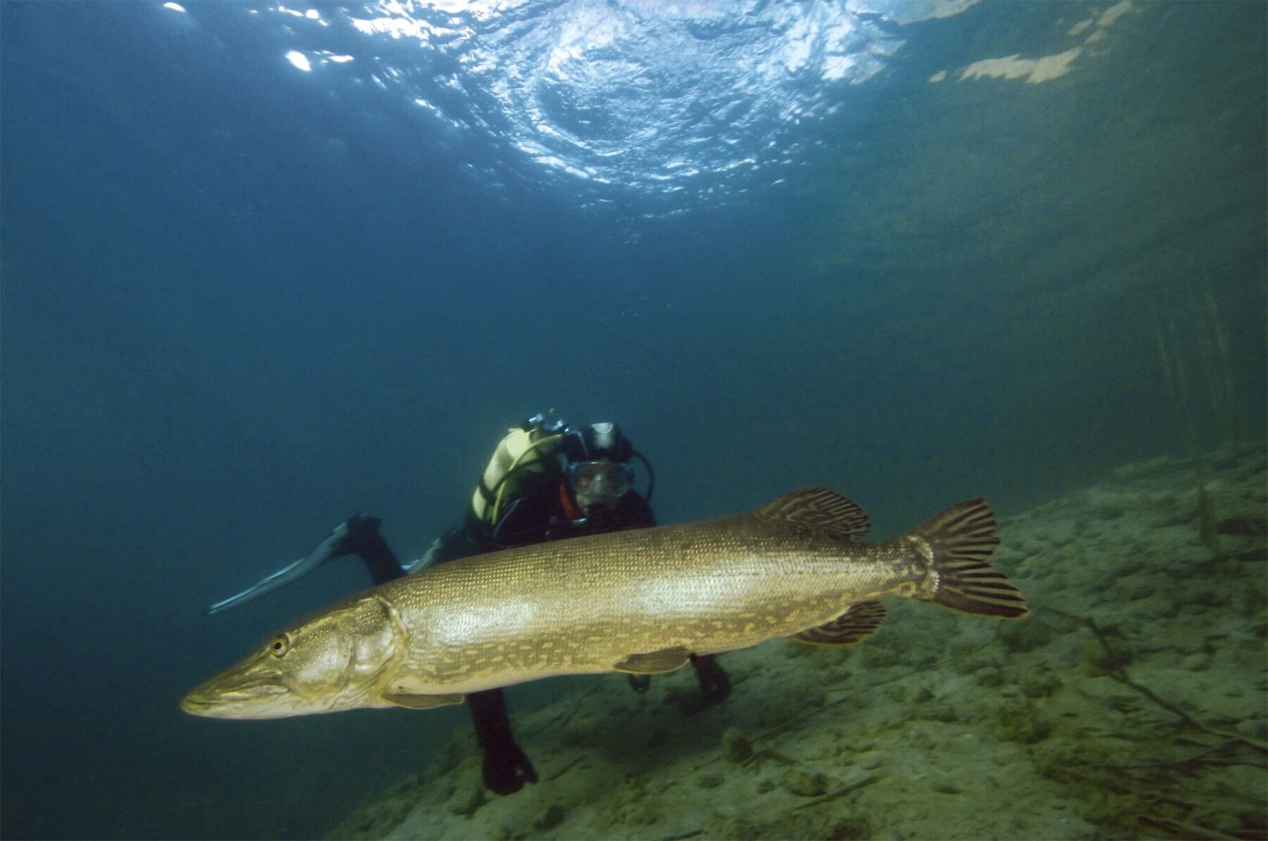 Des selfies sous l'eau avec un brochet de près d'un mètre ? Le plongeur valaisan Michel Lonfat raconte son histoire avec un poisson pas comme les autres.
