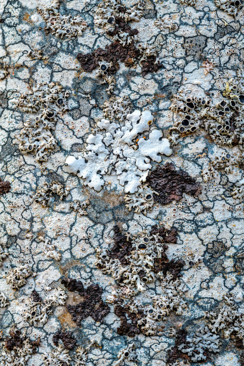 Les lichens me fascinent particulièrement. Ils sont omniprésents et pourtant presque invisibles pour la plupart d’entre nous : un paradoxe pour ces organismes à la biologie unique et d’une diversité exceptionnelle. La mosaïque vivante qu’ils forment sur les écorces, les rochers et les sols représente une incroyable source d’inspiration pour moi. Et même lorsque la météo est contraignante, les lichens sont toujours là, disponibles !
