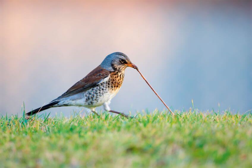 Les vers de terre sont au menu de nombreux prédateurs, comme cette grive litorne. Parmi les grands amateurs de lombrics, le hérisson, la bécasse des bois et la taupe d'Europe.