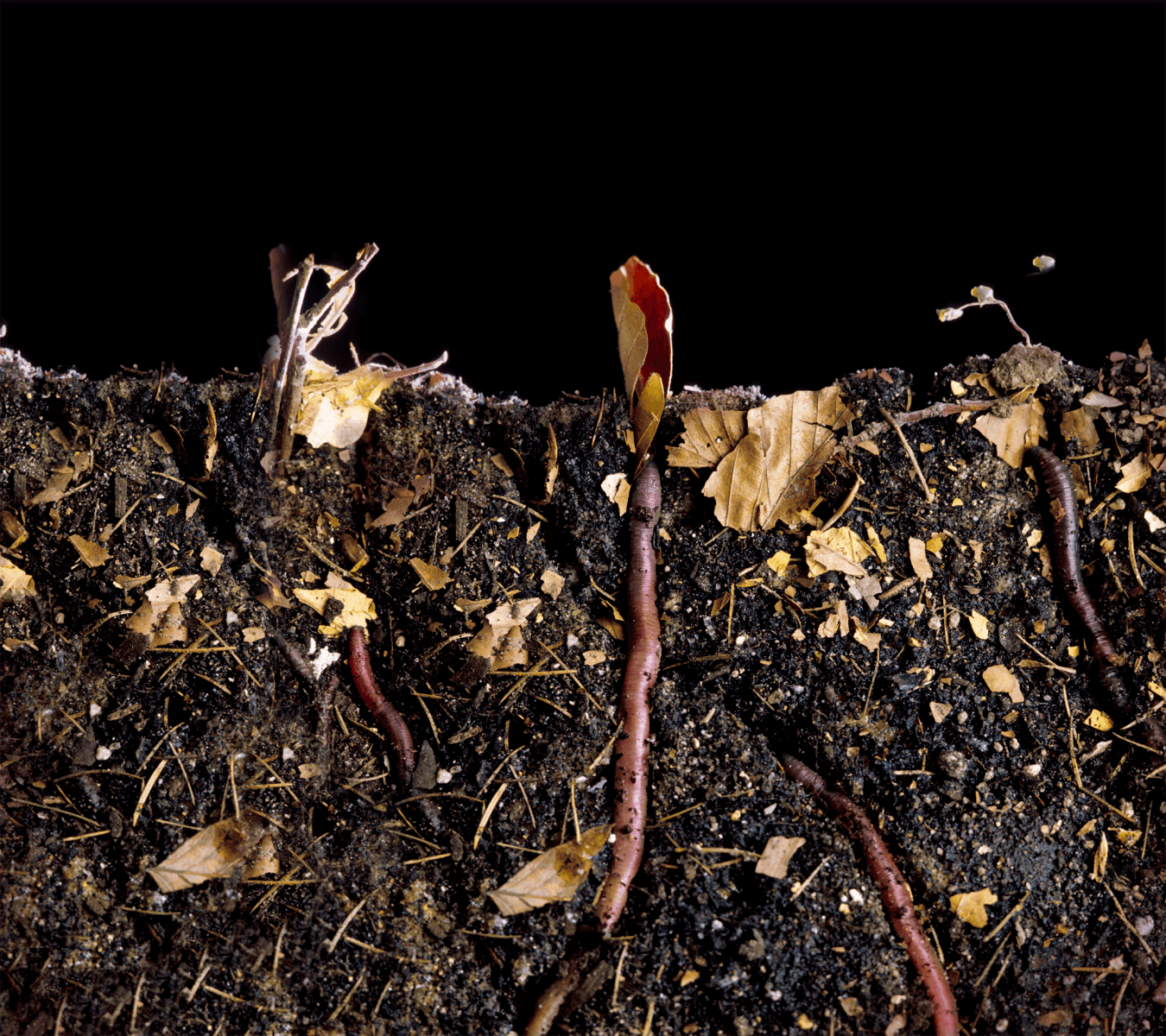 Grâce aux soies situées sur chacun de leurs segments, les vers s'accrochent à la terre pour ramper et creuser de longues galeries. A l'avant, ils ingèrent de la litière, des crottes de collemboles et d'acariens, de l'argile et des limons. Derrière eux, ils évacuent des tortillons enrichis en azote, phosphore ou potasse. Entre leur bouche et leur anus se produit un grand miracle. Par la grâce de leur mucus intestinal et des bactéries, le minéral et l'organique sont intimement liés. En d'autres termes, voici la terre, la vraie terre que vous connaissez, celle où les plantes s'enracinent pour croître et fructifier.