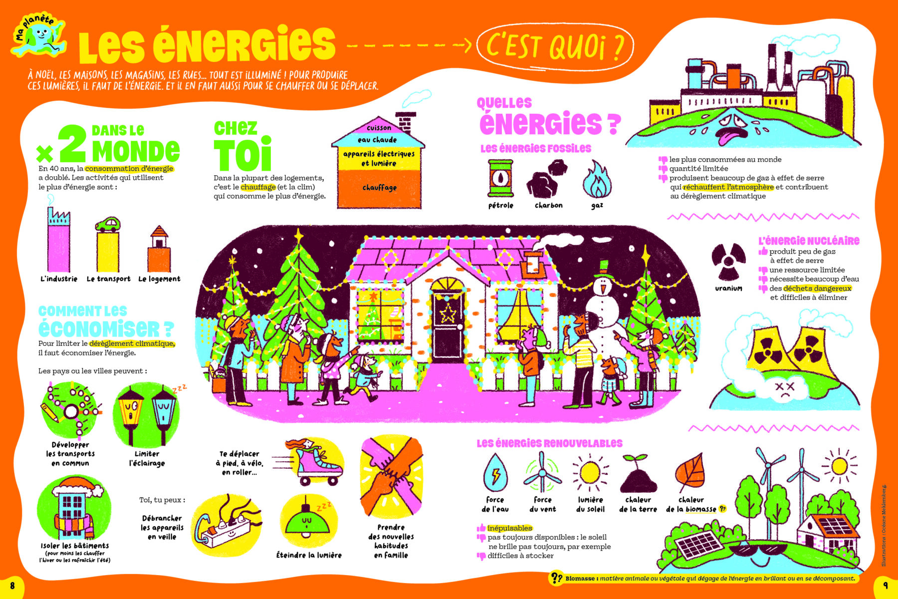 À Noël, les maisons, les magasins, les rues... tout est illuminé ! Pour produire ces lumières, il faut de l'énergie. Et il en faut aussi pour se chauffer ou se déplacer.