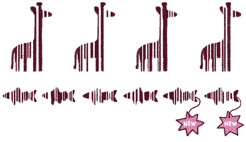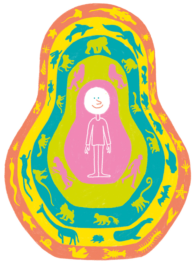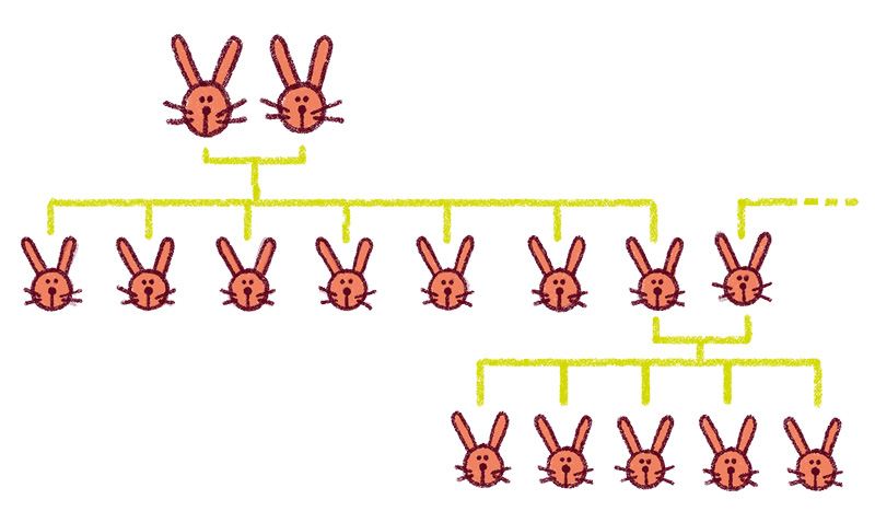 Les êtres vivants d’une même espèce peuvent se reproduire ensemble et leurs petits le peuvent aussi. Au fil des générations, ils changent, mais très peu. C'est l'évolution !