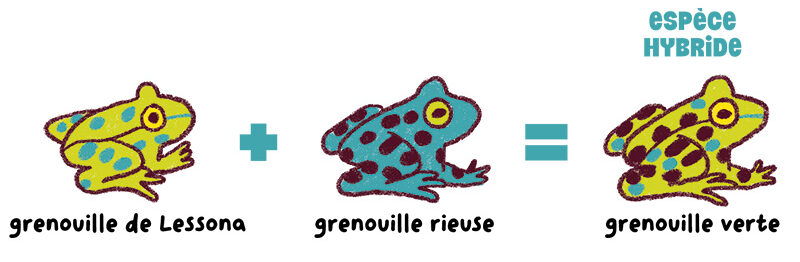 Mais il arrive que des individus d’espèces différentes se reproduisent et que leurs petits, appelés hybrides, peuvent aussi se reproduire. Exemple :