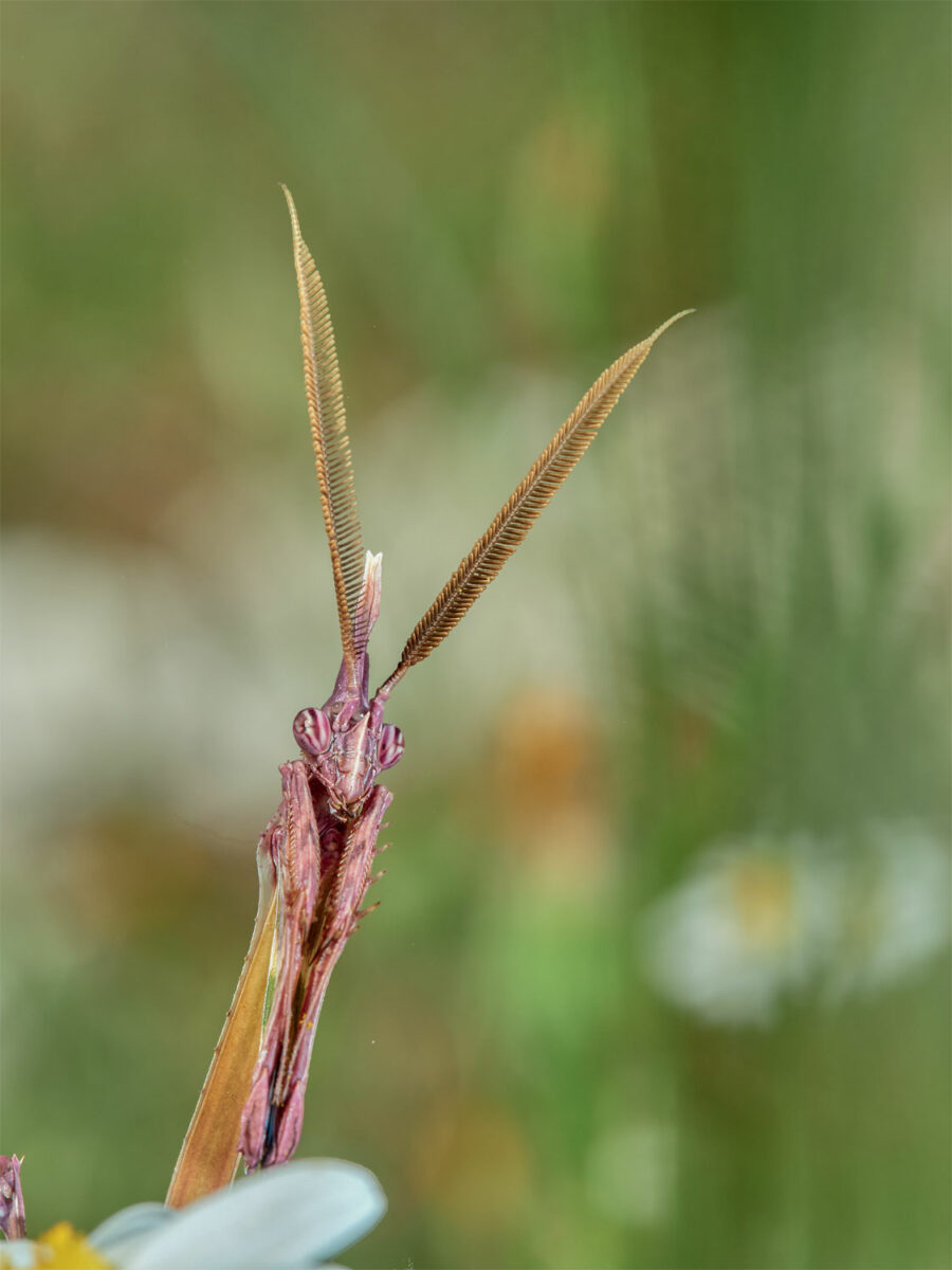 Connaissez-vous l’empuse commune ? Cette autre curiosité semble tout droit sortie d’un film de science-fiction. Proche des mantes, elle peuple les pelouses sèches du Sud de la France. La larve, appelée diablotin, a une silhouette caractéristique avec son abdomen relevé. Le mâle adulte est reconnaissable à ses antennes en forme de peigne, tandis qu’elles sont filiformes et courtes chez la femelle. Pour le célèbre entomologiste Jean-Henri Fabre : « Le monde des insectes n’a pas, dans nos pays, de créature plus bizarre. »