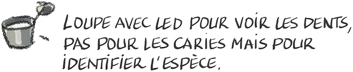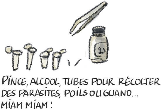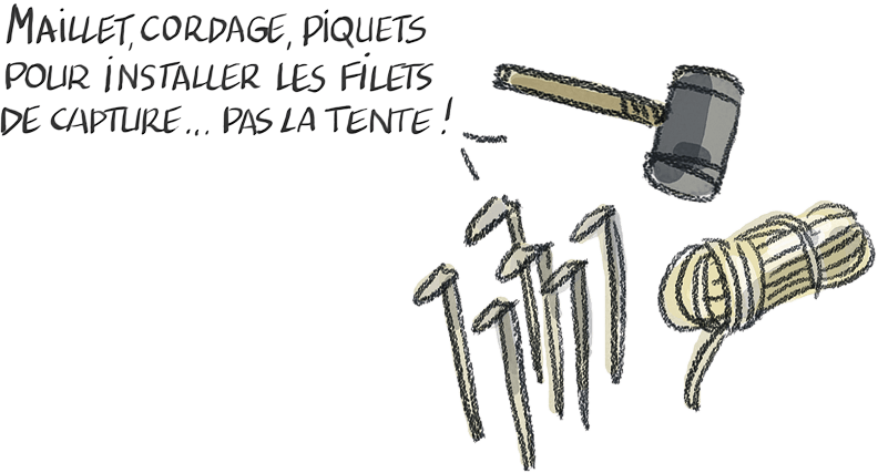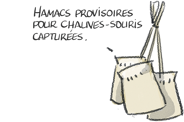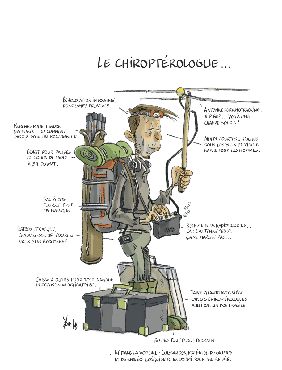 Découvrez l'attirail du chiroptérologue complet dans la galerie de dessins ci-dessous.