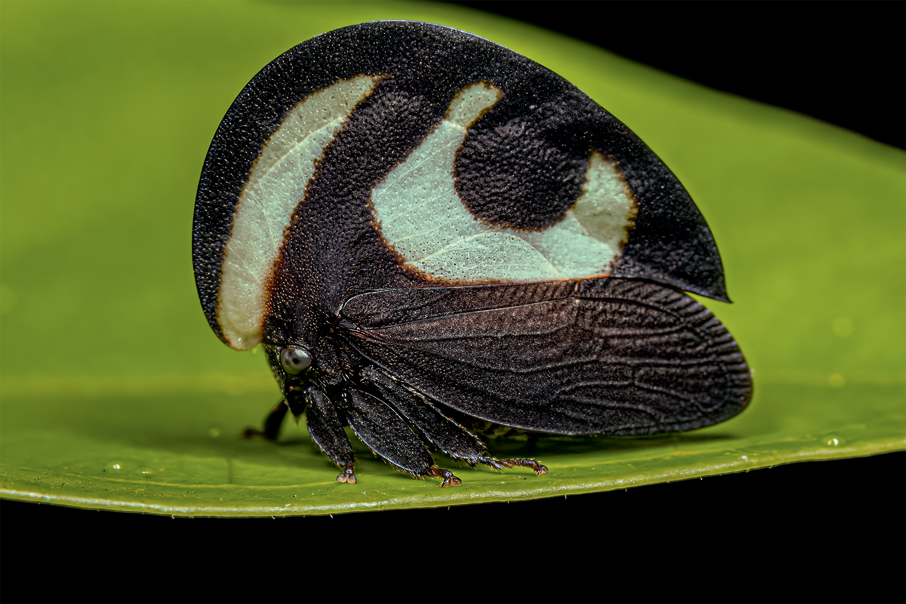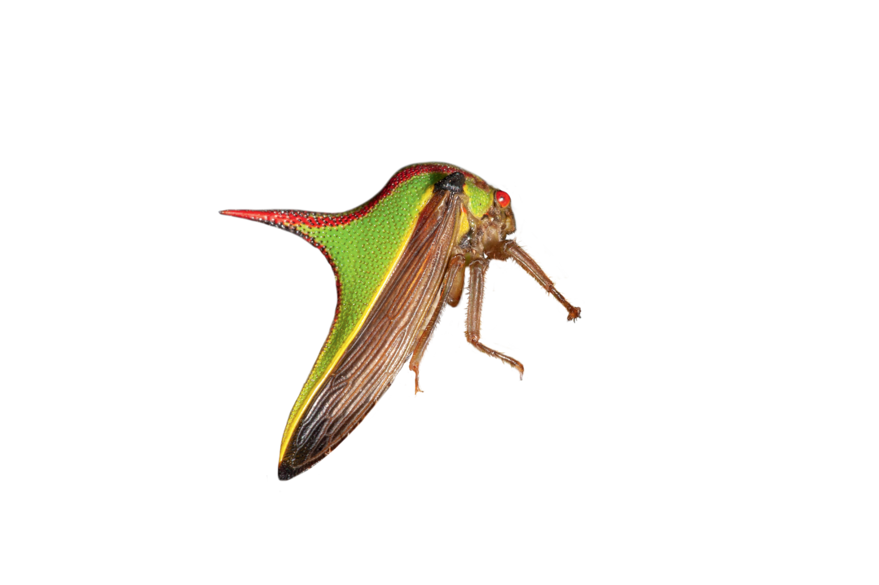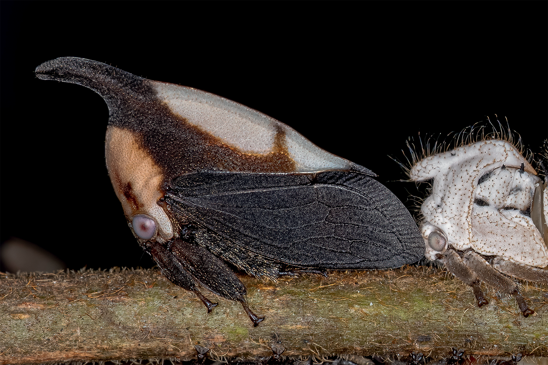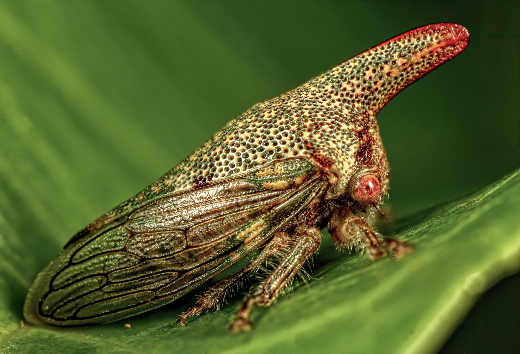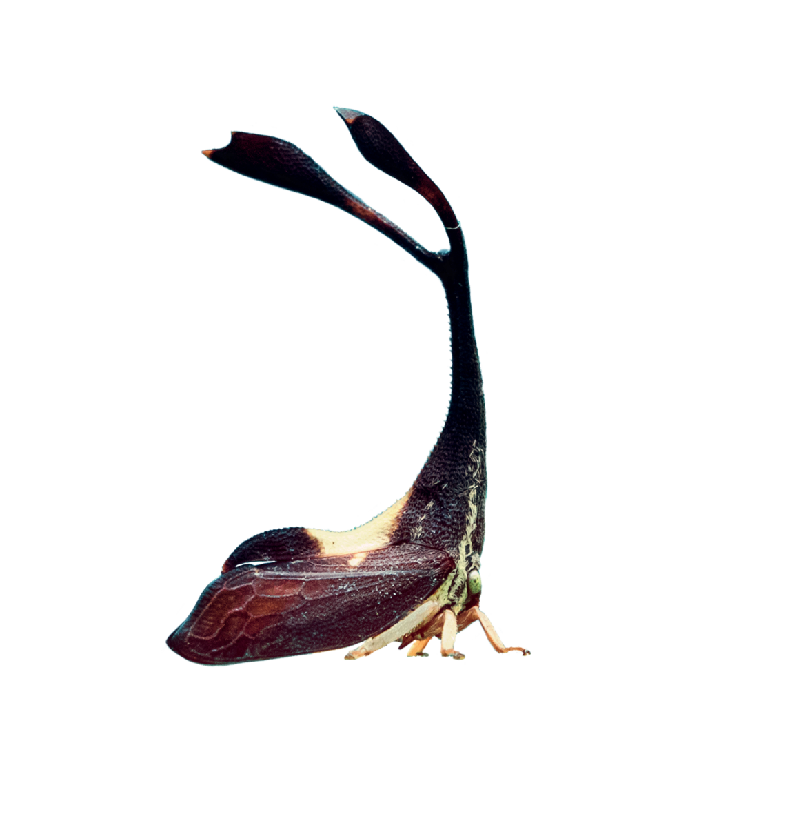 Seuls quelques membracides vivent en Europe mais cette famille présente sur tous les continents compte plus de 3 270 espèces, pour la plupart en Amazonie. Filiformes ou trapus, bigarrés ou unis, de couleur vive ou version camouflage... leurs formes, couleurs et tailles sont très diversifiées. Mais ces insectes sont tous pourvus d’un casque. Chez certains membracides, les femelles veillent sur les œufs et les larves, leur assurant une protection face aux prédateurs. Elles peuvent même les aider à s’alimenter en perçant les tissus végétaux trop épais, un soin maternel rare chez les insectes !