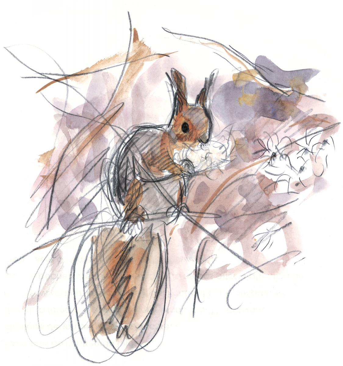 Dessins NatureLes deux destins de l’écureuils : casse-croûte ou casse-pipe