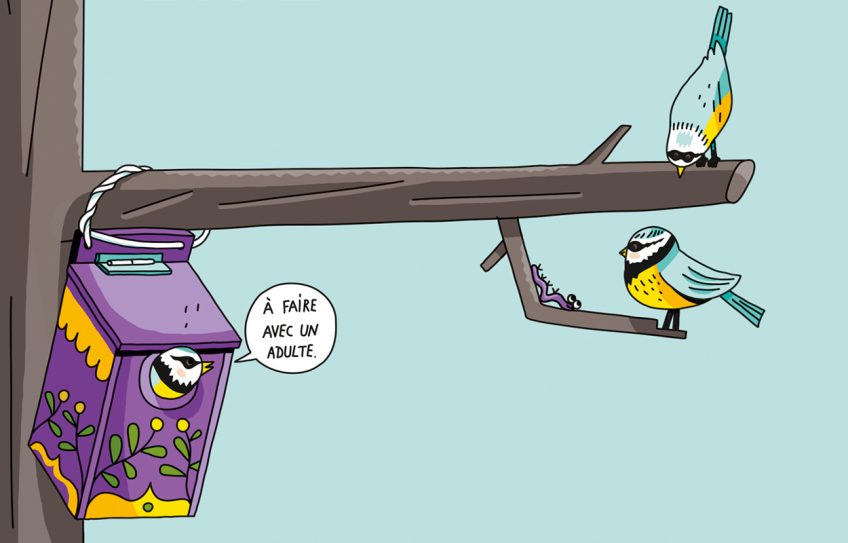 C’est à Denis Clavreul que La Salamandre a confié la mission de pister l’oiseau masqué. Installé à Nantes, l’artiste et biologiste a passé six mois à dessiner et peindre des mésanges charbonnières pour ce dossier. « La charbonnière est une mésange graphiquement très intéressante : on voit peu ou pas ses yeux et pourtant elle est bien expressive. Vive, tonique, elle prend des postures variées. Elle présente aussi des contrastes forts : joues blanches, calotte noir d’encre ! La peindre au fil des semaines fut une aventure réjouissante. »