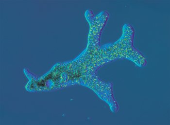 Quelles que soient les règles subtiles de la séduction amibienne, l’amour chez elles est fusionnel et l’union irréversible. En quelques minutes, les deux cellules n’en font plus qu’une. Dans certains cas, à force de manger et de gonfler, l’amibe devient géante. Une gelée vivante et colorée, parfois plus grande qu’une assiette, rampe sous nos yeux médusés.