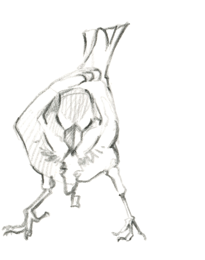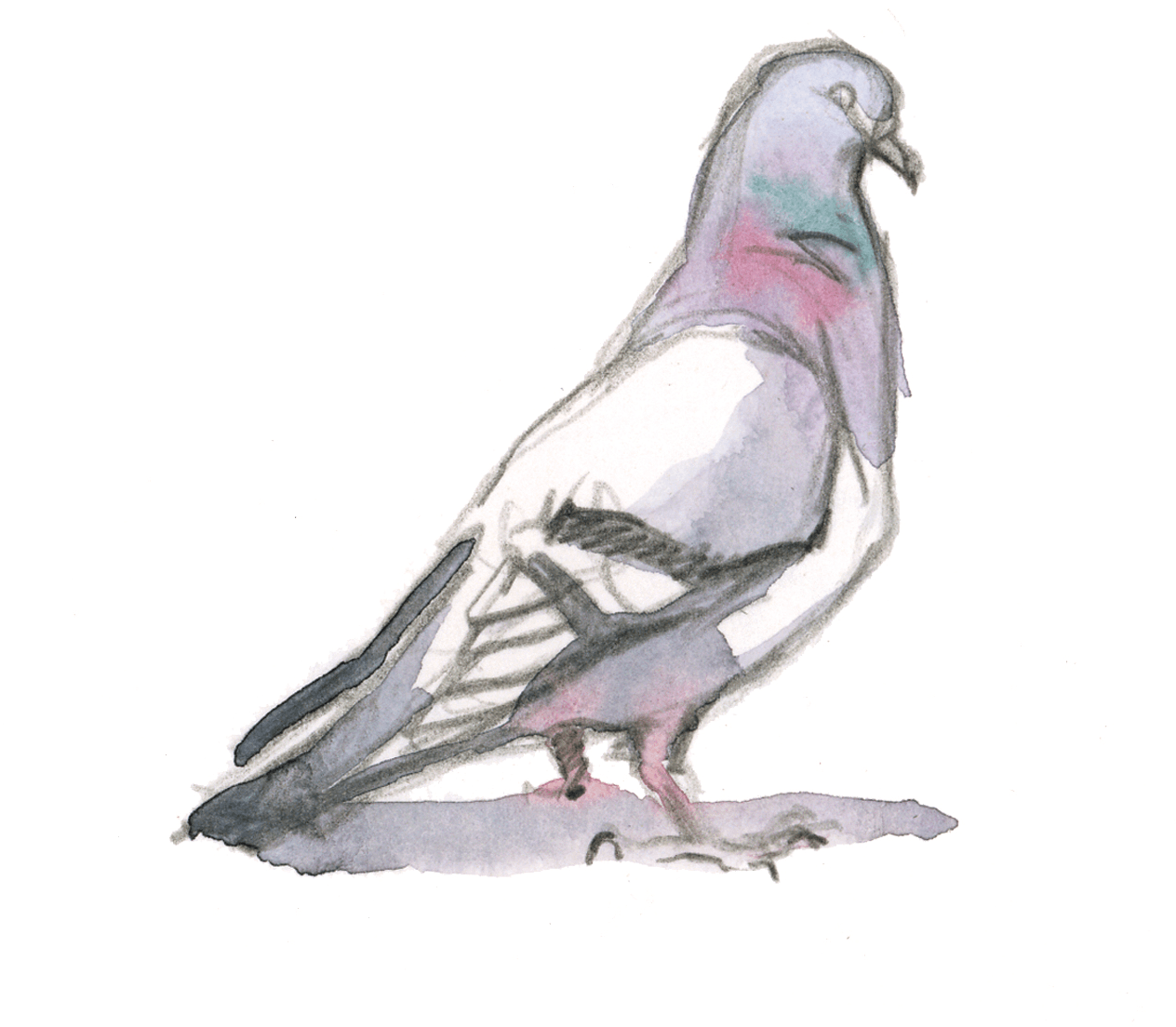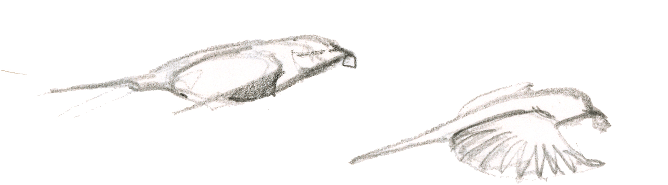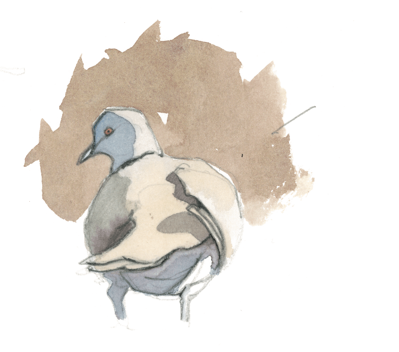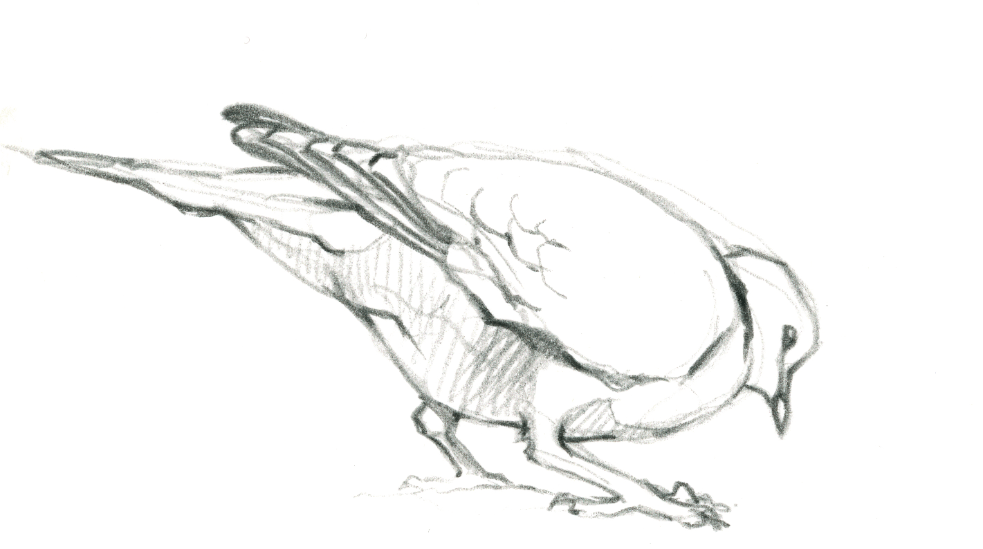 L'agitation et les piaulements des moineaux sur la terrasse du bistrot attirent l'attention des maîtres de l'air citadin. Quelques pigeons bisets, visiteurs fidèles des lieux fréquentés par l'homme, rejoignent le petit café d'un vol en piqué depuis le haut du clocher. Ils avancent sous les chaises en évinçant les moineaux grâce à leur taille imposante. Sans jamais s'arrêter, ils picorent les miettes en hochant le cou comme des jouets rechargeables.