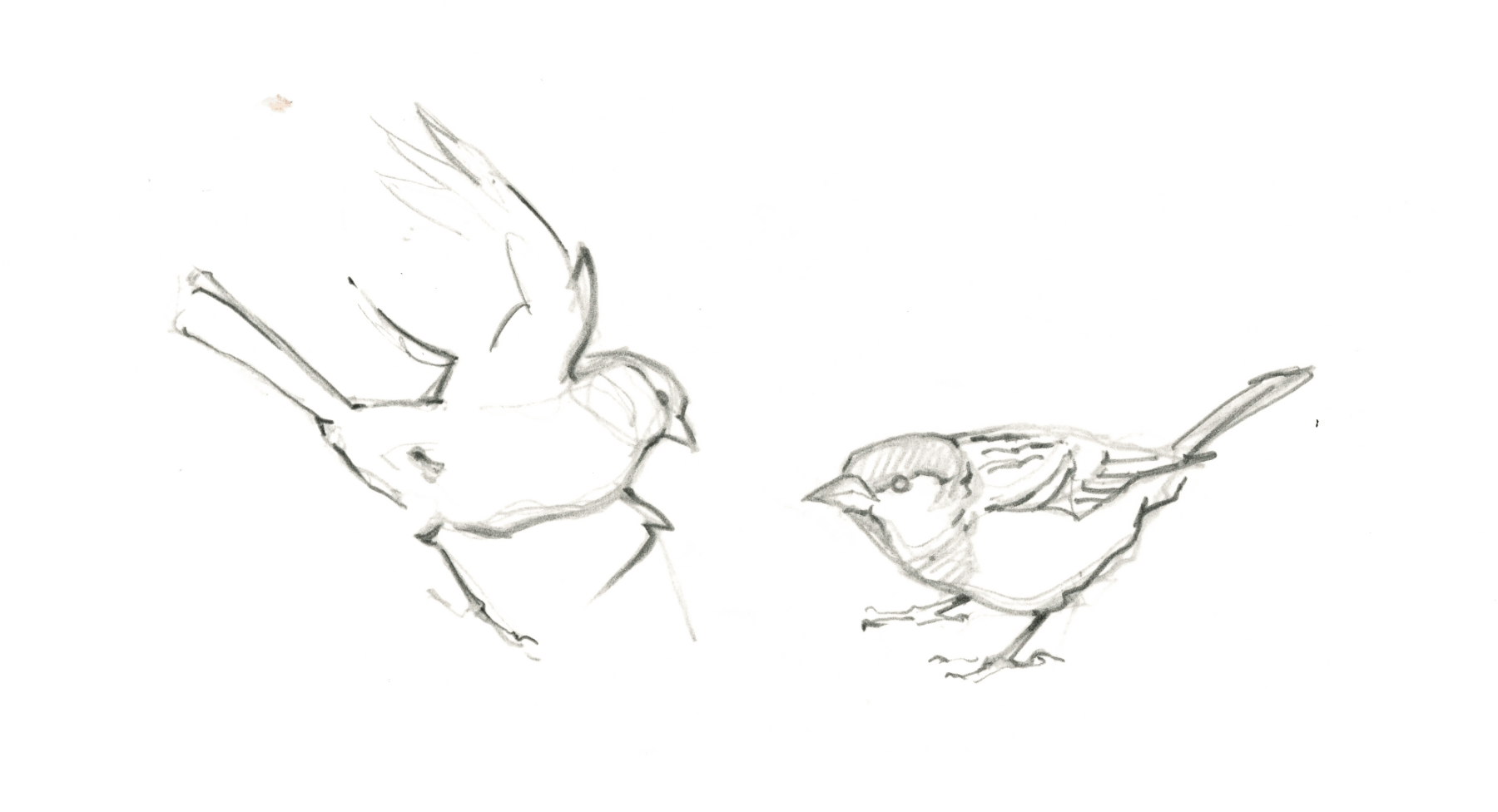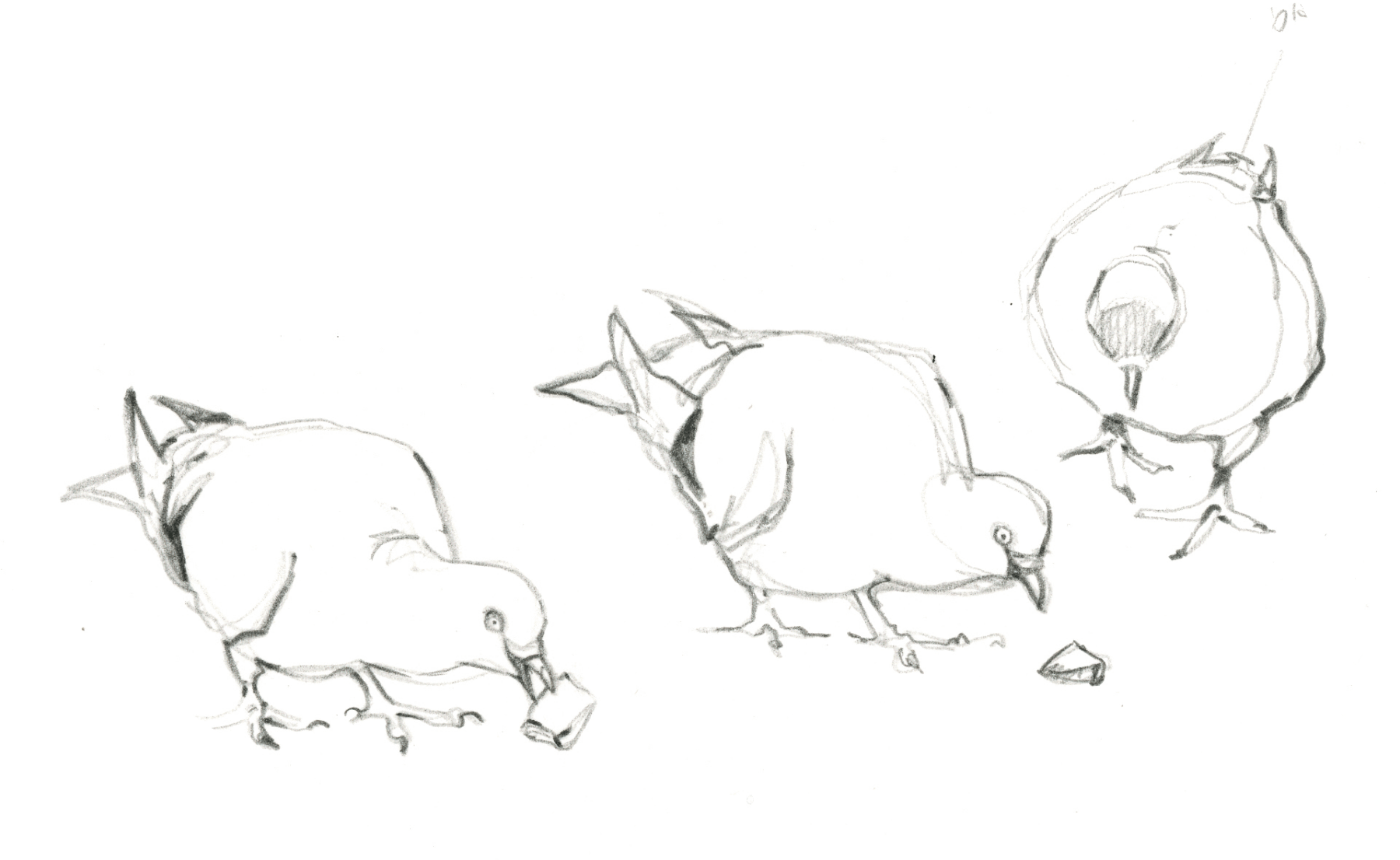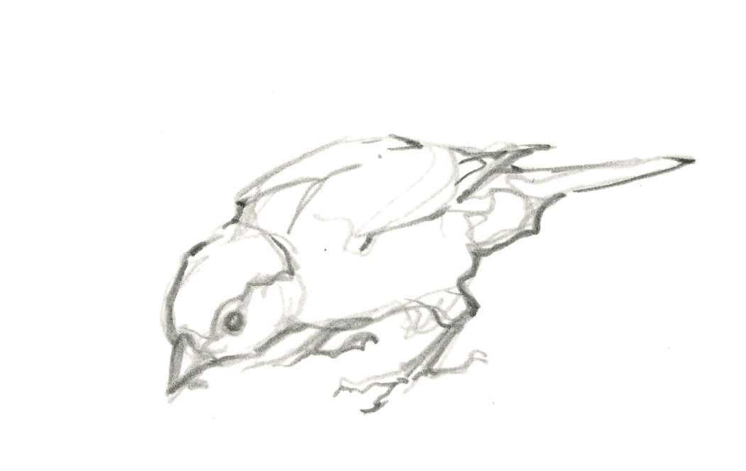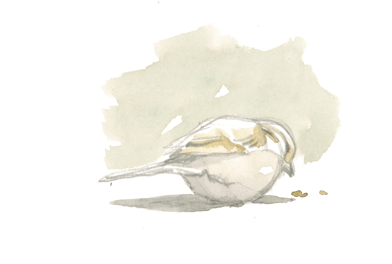 Une vieille dame un peu maladroite fait un faux mouvement en enlevant un gant. Un bout de croissant finit par terre. En trois secondes, quelques moineaux domestiques débarquent de nulle part. Les disputes pour la friandise sont violentes et les coups de bec ne manquent pas. Un mâle, reconnaissable à sa calotte grise bordée de brun, s'envole enfin avec son butin. Le calme regagne les lieux… jusqu'à ce que la même dame secoue son écharpe pour se débarrasser des miettes qui s'y sont collées. Nouvelle bagarre entre les oiseaux, encore plus vive qu'auparavant.