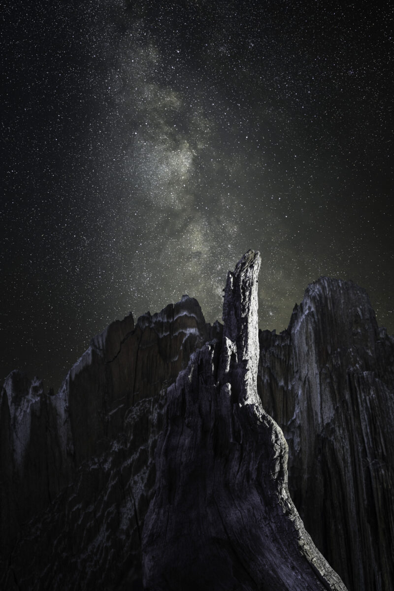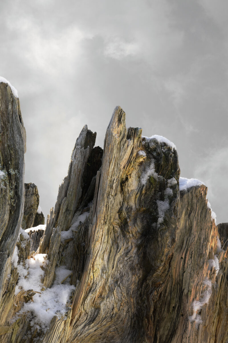 Par un changement d’échelle époustouflant, le photographe fribourgeois Philippe Jaccard déniche des sommets célèbres et des cimes majestueuses tout près de chez lui. Quand une souche devient roche.