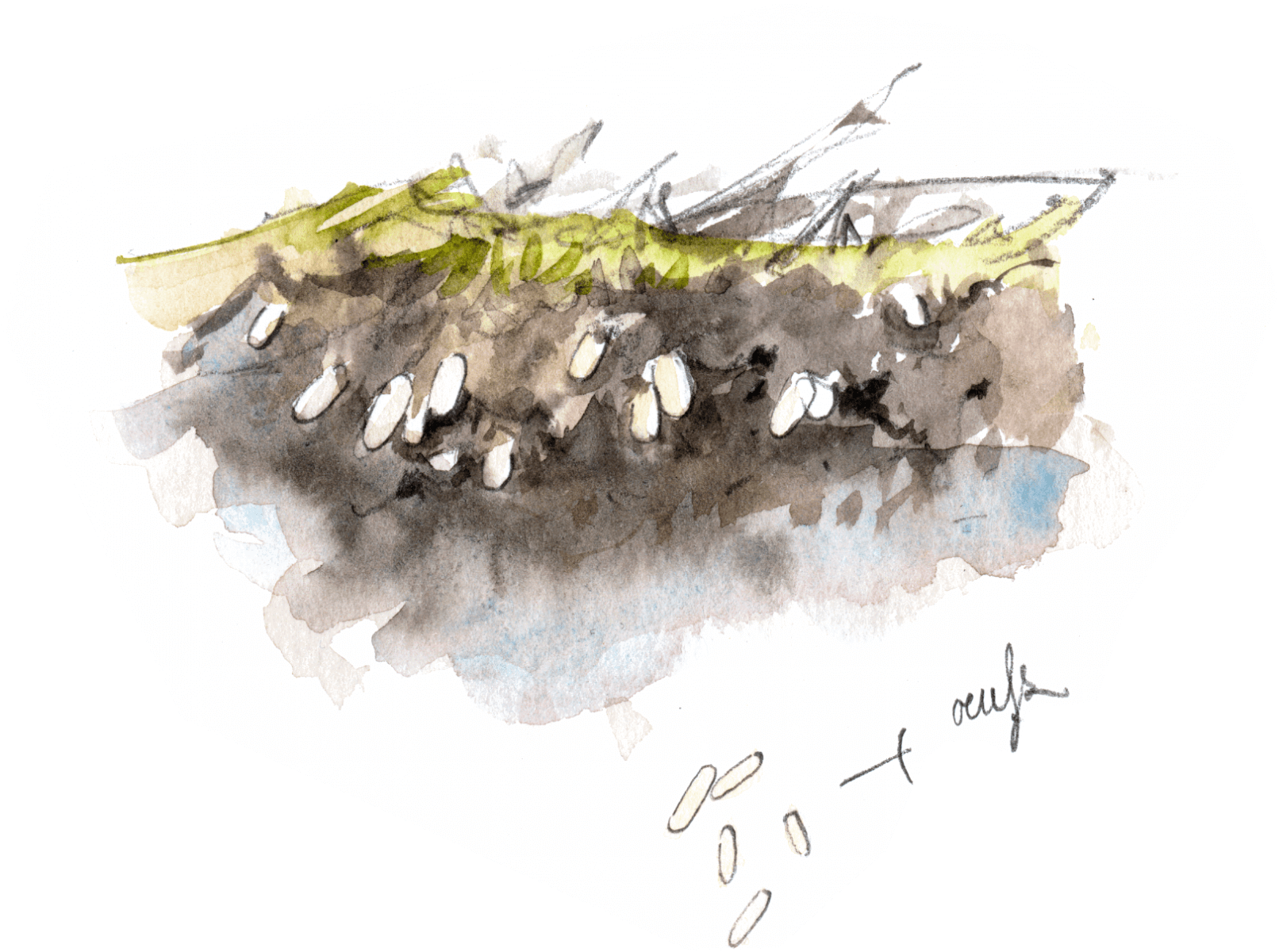 En juillet, les grillons minuscules sont légion. Ils errent dans la campagne, se cachent sous des feuilles ou des cailloux, grandissent peu à peu en muant toutes les trois semaines. Mais la plupart de ces vagabonds sans défense finissent dévorés par des araignées ou par des fourmis.