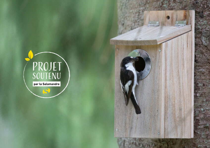 La Salamandre soutient la pose de 110 nichoirs à gobemouches et rougequeues avec l’association Sorbus dans les espaces verts de Neuchâtel.