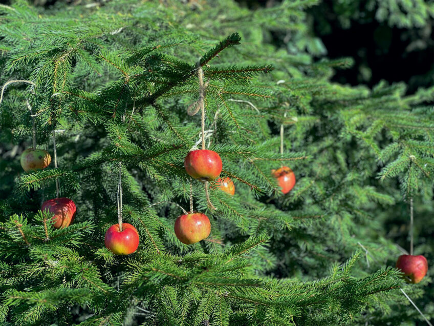 Offrir des présents aux oiseaux, écureuils et autres lutins des forêts et jardins ? Oui, mais uniquement par grands froids ! Décorez un arbre de guirlandes de graines et de fruits secs, de pommes suspendues ou de mangeoires bricolées. L’occasion de passer de beaux moments en présence d’arbres bien vivants.