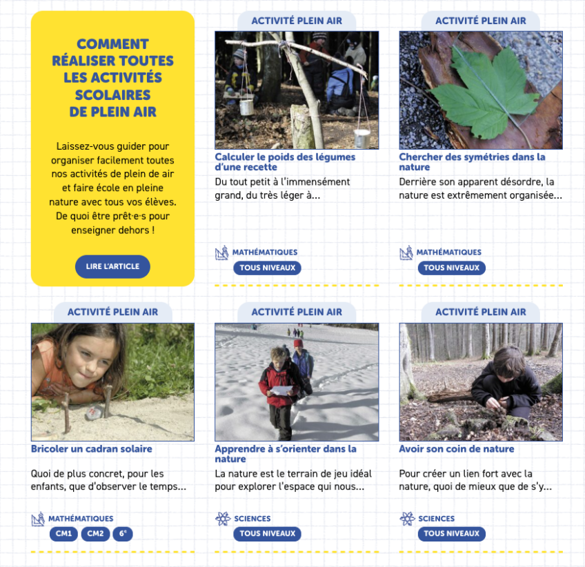 Des activités testées et validées par des experts pour vous guider pas à pas et emmener vos élèves faire école dehors.