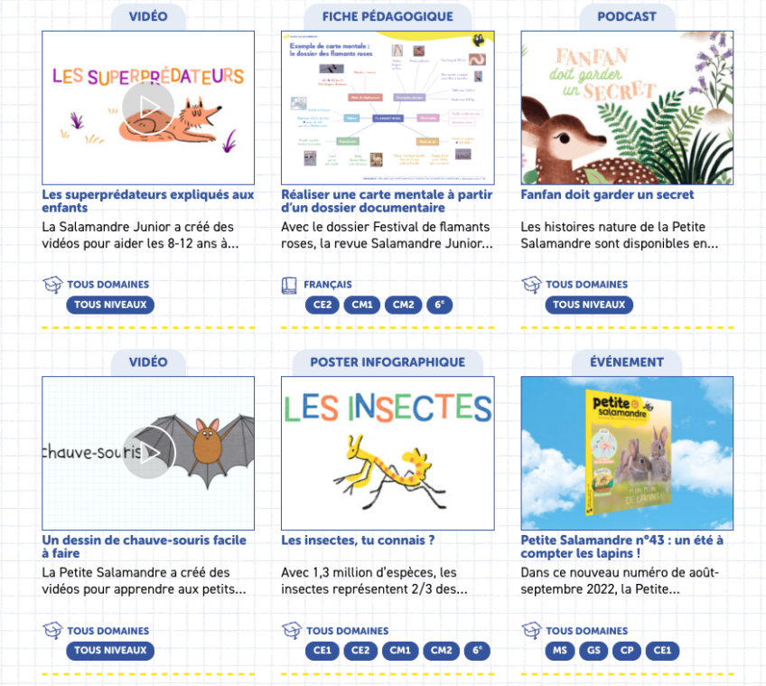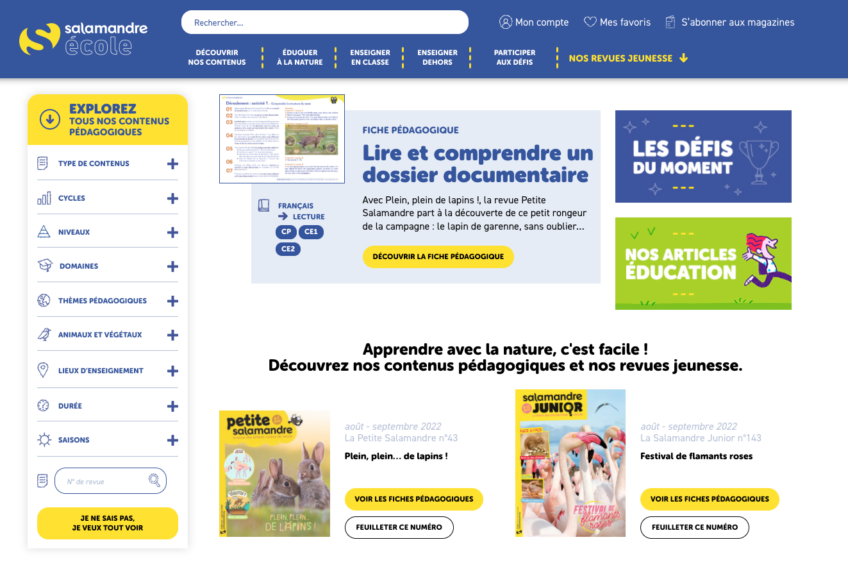 Le plus ? Le site permet de retrouver tous les numéros des 2 revues jeunesse Salamandre, ainsi que leurs contenus pédagogiques liés.