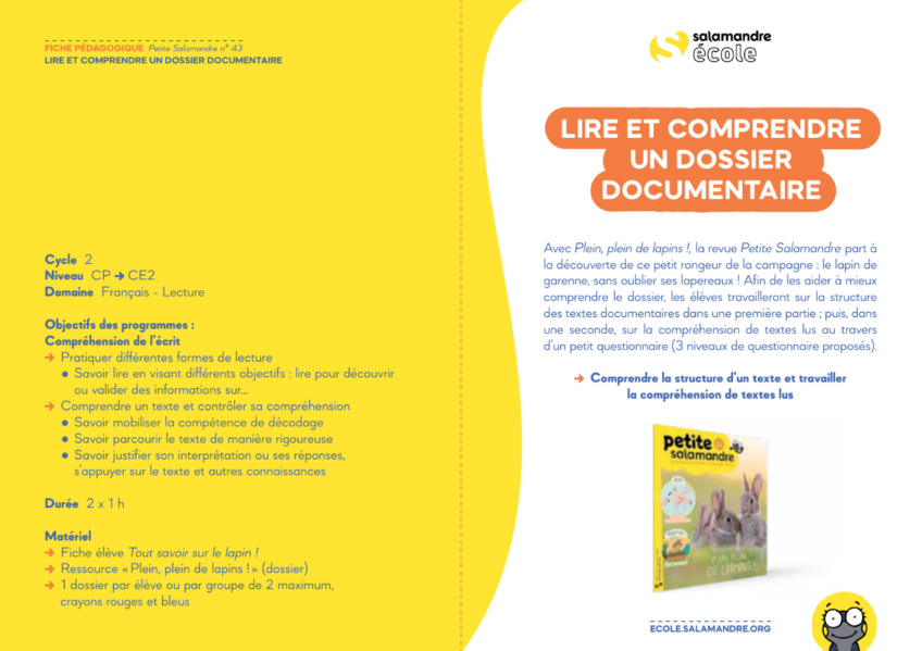 Le site ecole.salamandre.org a été enrichi de quelque 100 fiches pédagogiques par une équipe d’enseignant·e·s, de naturalistes et de journalistes jeunesse. Elles ont été travaillées éditorialement et graphiquement pour être téléchargées, imprimées pour vos élèves et projetées en classe.