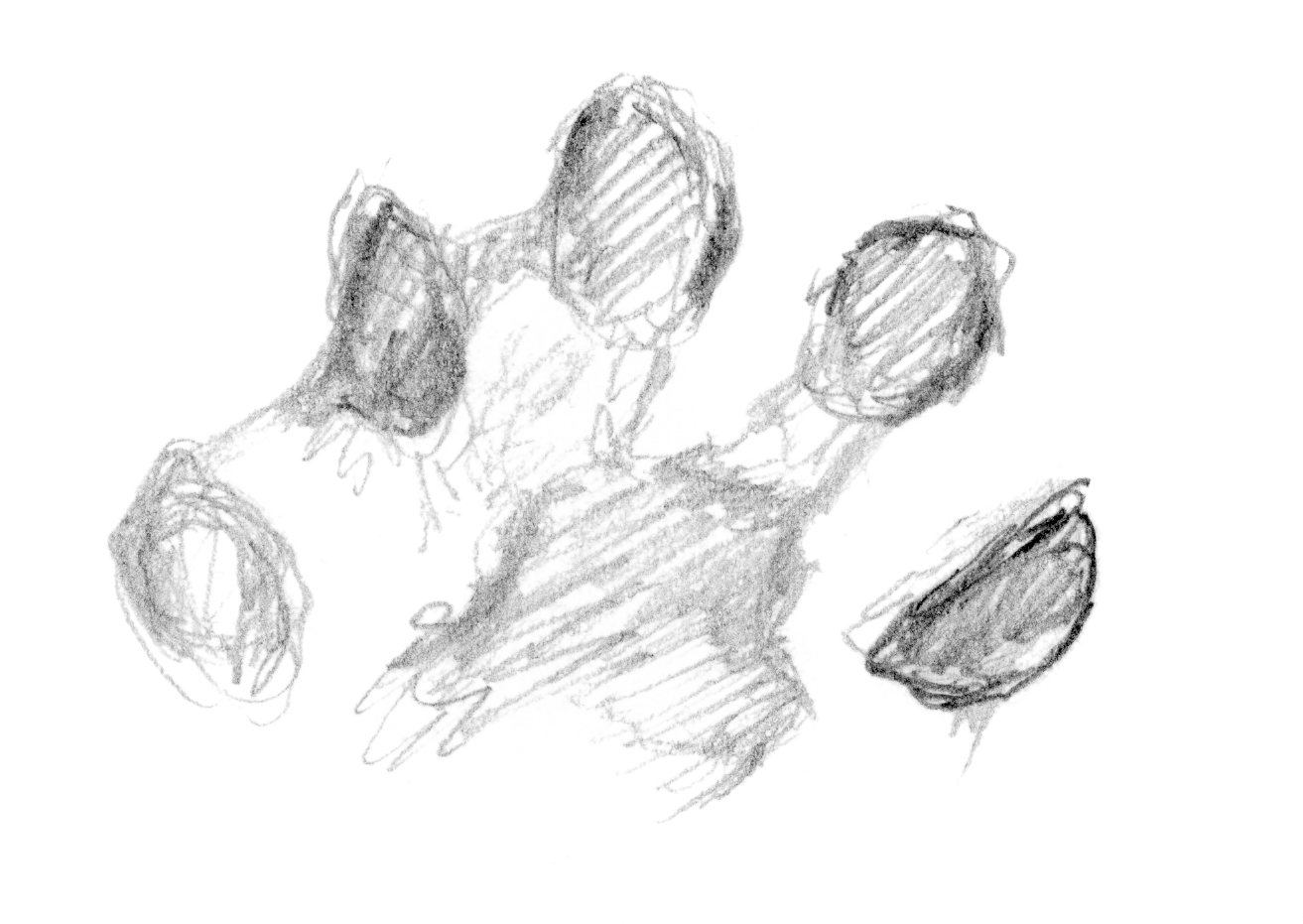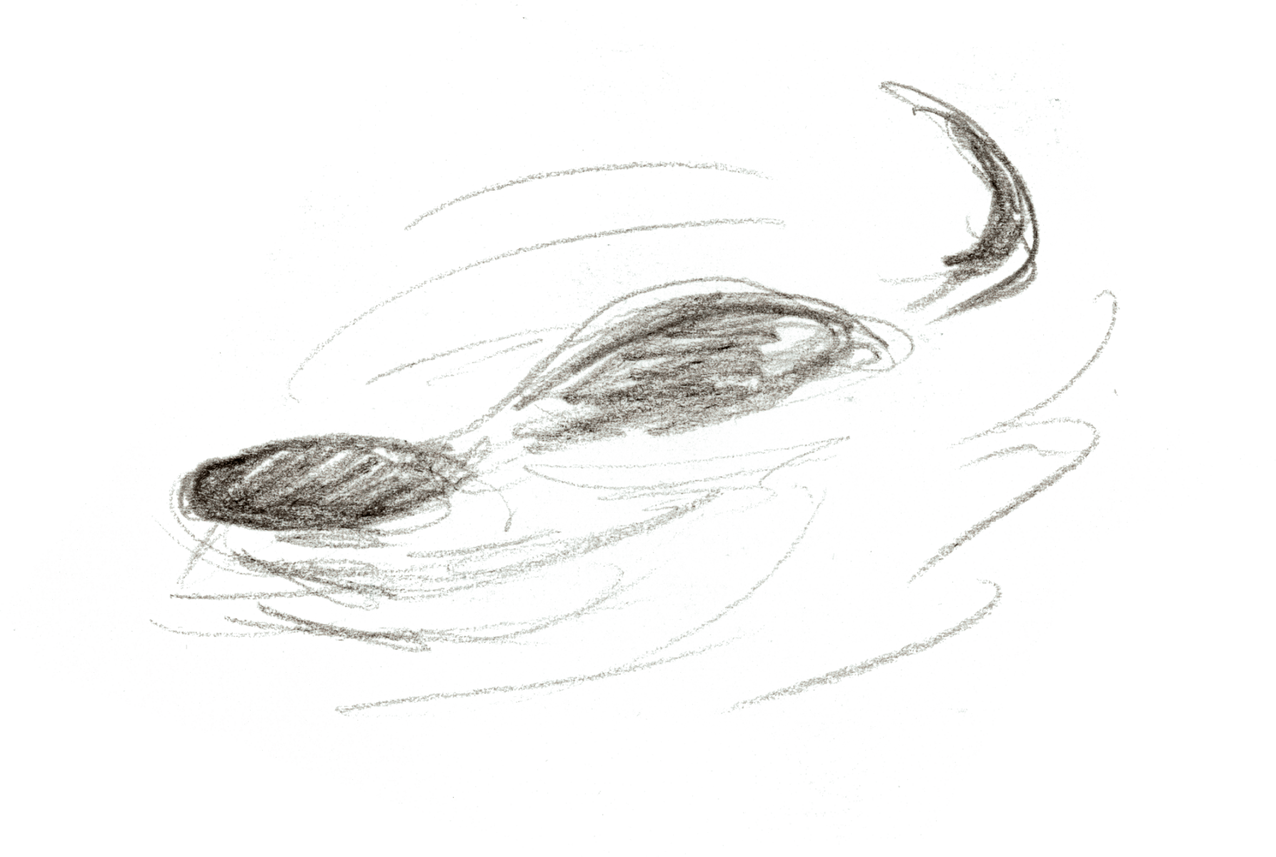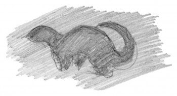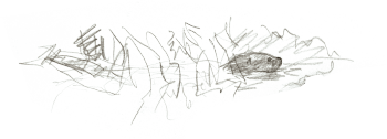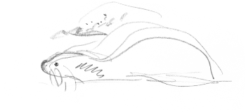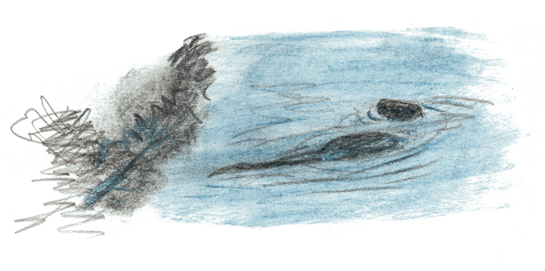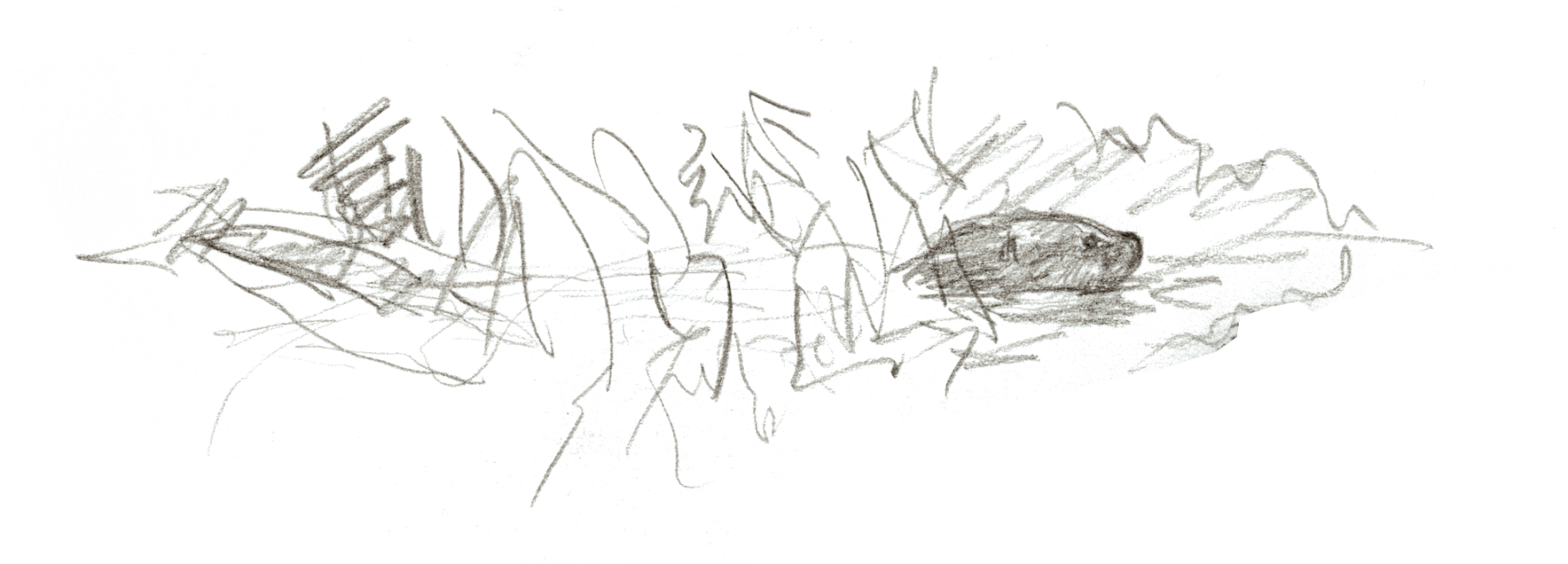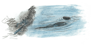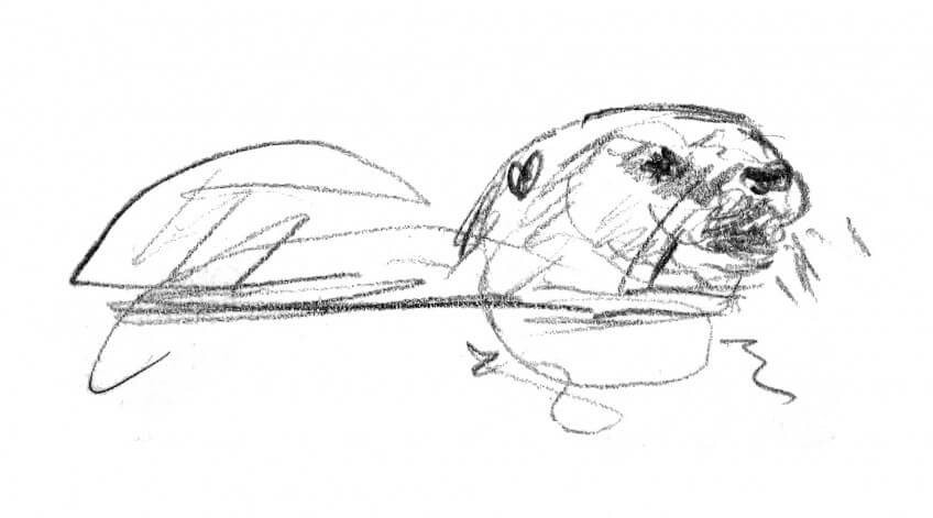 Une nuit, je ferme mon carnet, satisfait de mon croquis. Au matin, ce n’est qu’une pelote de traits dans laquelle je ne vois aucune loutre!