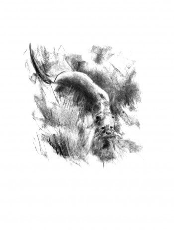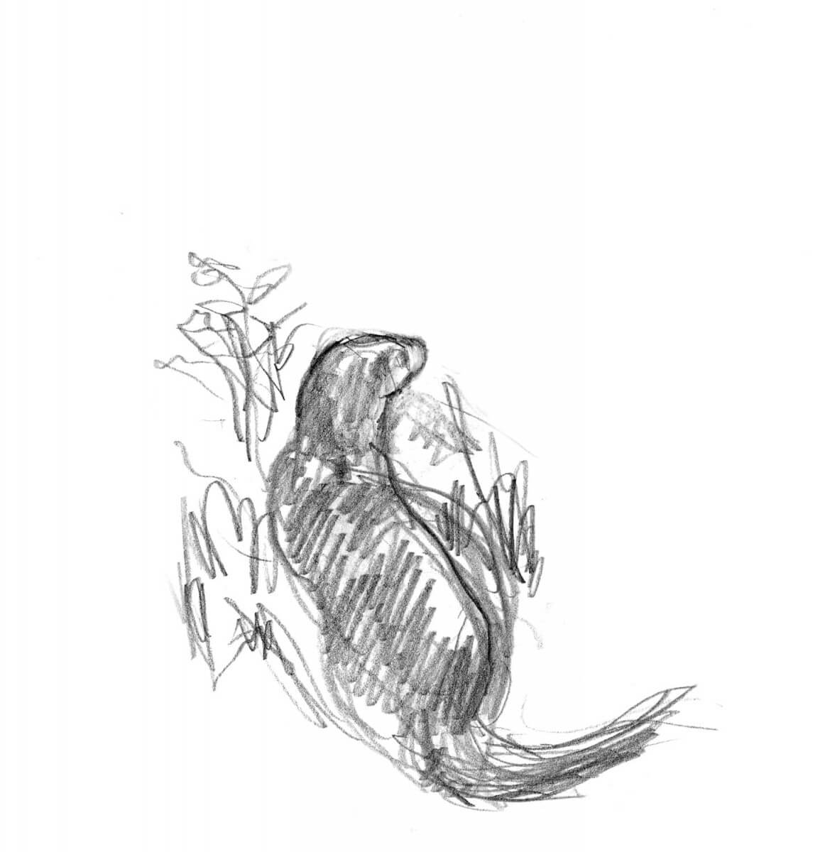 Quand la bête rêvée se révèle furtivement. Comment choisir entre dessin et observation? Il n’y a pas de choix! Quand l’observation est rapide, je regarde. Le dessin viendra après, de mémoire.