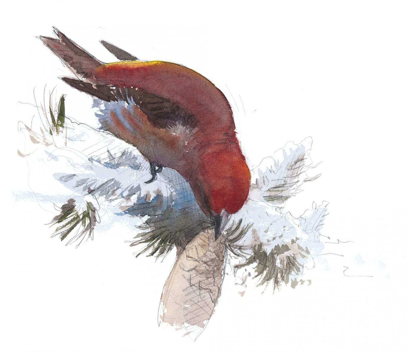 Pour avoir plus de chances d'observer des becs-croisés, il vaut mieux s'installer sur des hauteurs permettant d'observer des cimes d'arbres en contrebas.