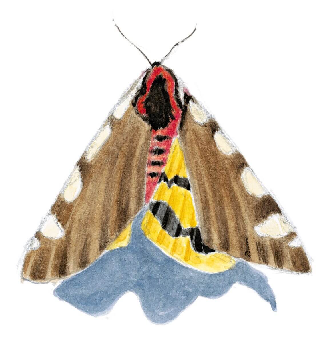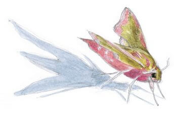 Croyez-moi, ce bestiaire n’a rien à envier aux papillons qui volent en plein jour. Moins vivement colorés il est vrai, les nocturnes sont les rois des motifs et des textures d’une vertigineuse subtilité, rehaussés tantôt d’un abdomen rouge, tantôt d’une gouttelette d’or massif ou encore d’un ocelle bleu. Un vrai délice, mais un défi aussi, pour notre dessinateur Pierre Baumgart.