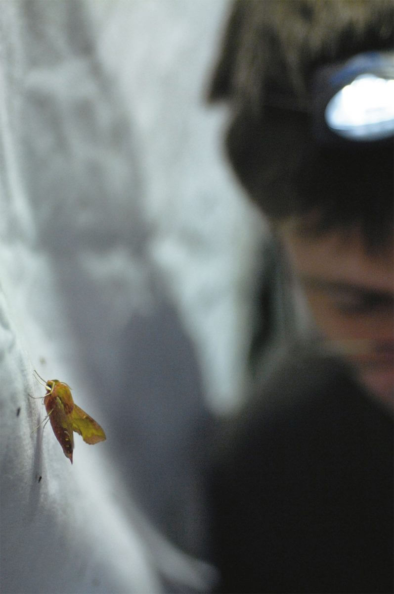 Les papillons ! Ce sont eux que les deux passionnés traquent patiemment depuis plus de vingt ans: bombyx, sphinx, zeuzères, lichénées, écailles, bucéphales et autres invisibles beautés de la nuit. Invisibles parce que la plupart d’entre eux se tiennent toute la journée parfaitement camouflés sur une écorce ou sous une feuille. Ils ne prennent leur envol qu’au crépuscule.