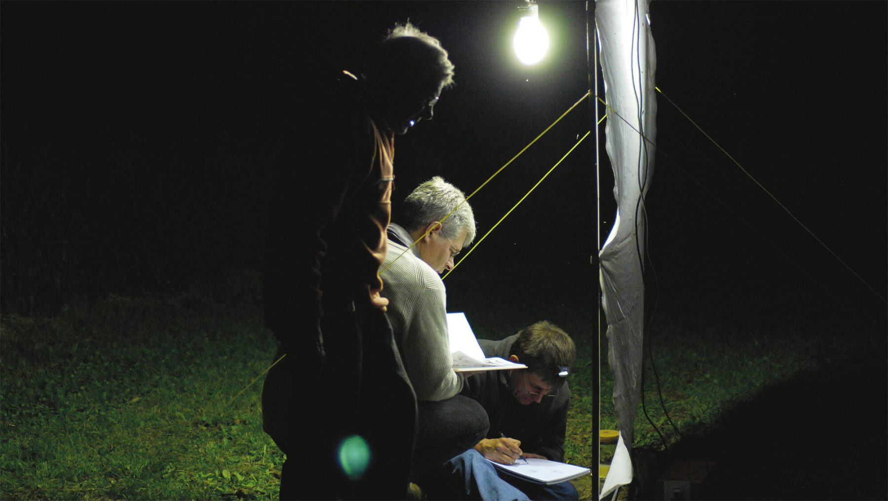 Qui sont ces individus qui tendent et éclairent une toile en pleine nature ? Reportage chez les piégeurs de papillons.
