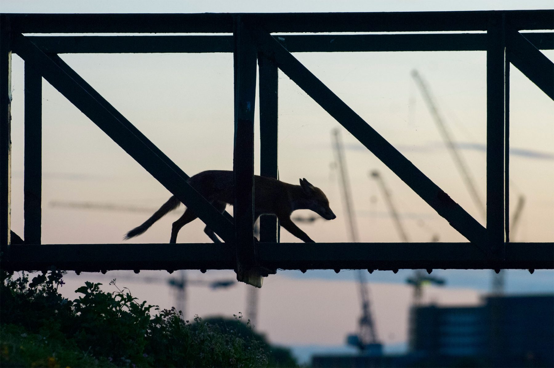 Ses explorations le conduisent sur les territoires d’autres renards peu partageurs. Rejeté par ses semblables, houspillé par les corneilles et agressé par les chiens des fermes, il avance malgré lui vers l’agglomération. Chaque pas le rapproche des humains et de leurs contradictions. Surprise aux confins de la ville : les bipèdes ont l’air plus tolérants que ceux qu’il a aperçus dans la forêt avec leurs fox-terriers et leurs armes. Peut-être ne le voit-ils tout simplement pas ? Mais que peut bien faire un chasseur de campagnols dans la cité des hommes ? Exploiter leurs montagnes d’ordures… Bien sûr les poubelles et les décharges paraissent moins alléchantes que les prairies fauchées riches en petits rongeurs rondelets. Toutefois, elles constituent un buffet pratique pour le renard. En milieu urbain, l’enjeu est de maîtriser la traversée des routes et des avenues, partager les restes de pique-nique avec pigeons, mouettes, pies ou chats. Le tout sans oublier sa nature de prédateur. Il faut aussi trouver un petit havre de paix où souffler entre les excursions citadines. Plutôt parc arboré ou cimetière tranquille avec ses vieilles croix en pierre ?