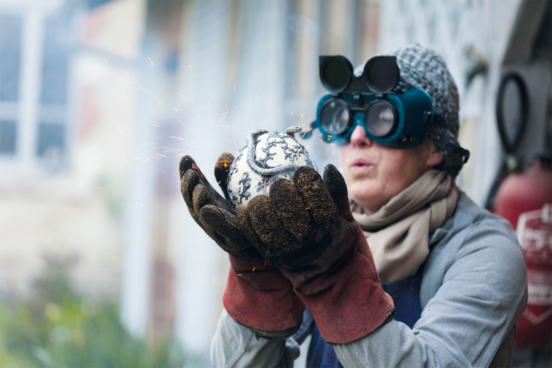 Esquisse, modelage, première cuisson, émail, seconde fournée puis bain de sciure incandescente... Ainsi naît comme par magie le fabuleux bestiaire de la céramiste Catherine Chaillou.