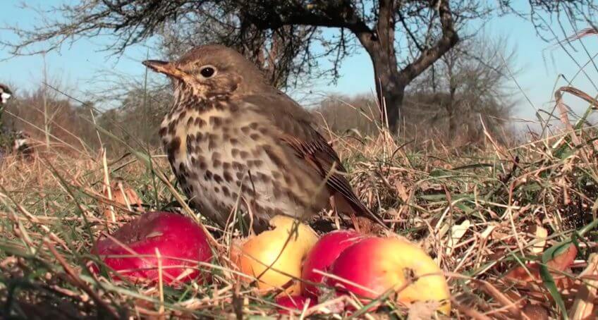 Julien Perrot vous emmène au vieux verger, où les fruits tombés au sol font le bonheur des merles, étourneaux et grives.