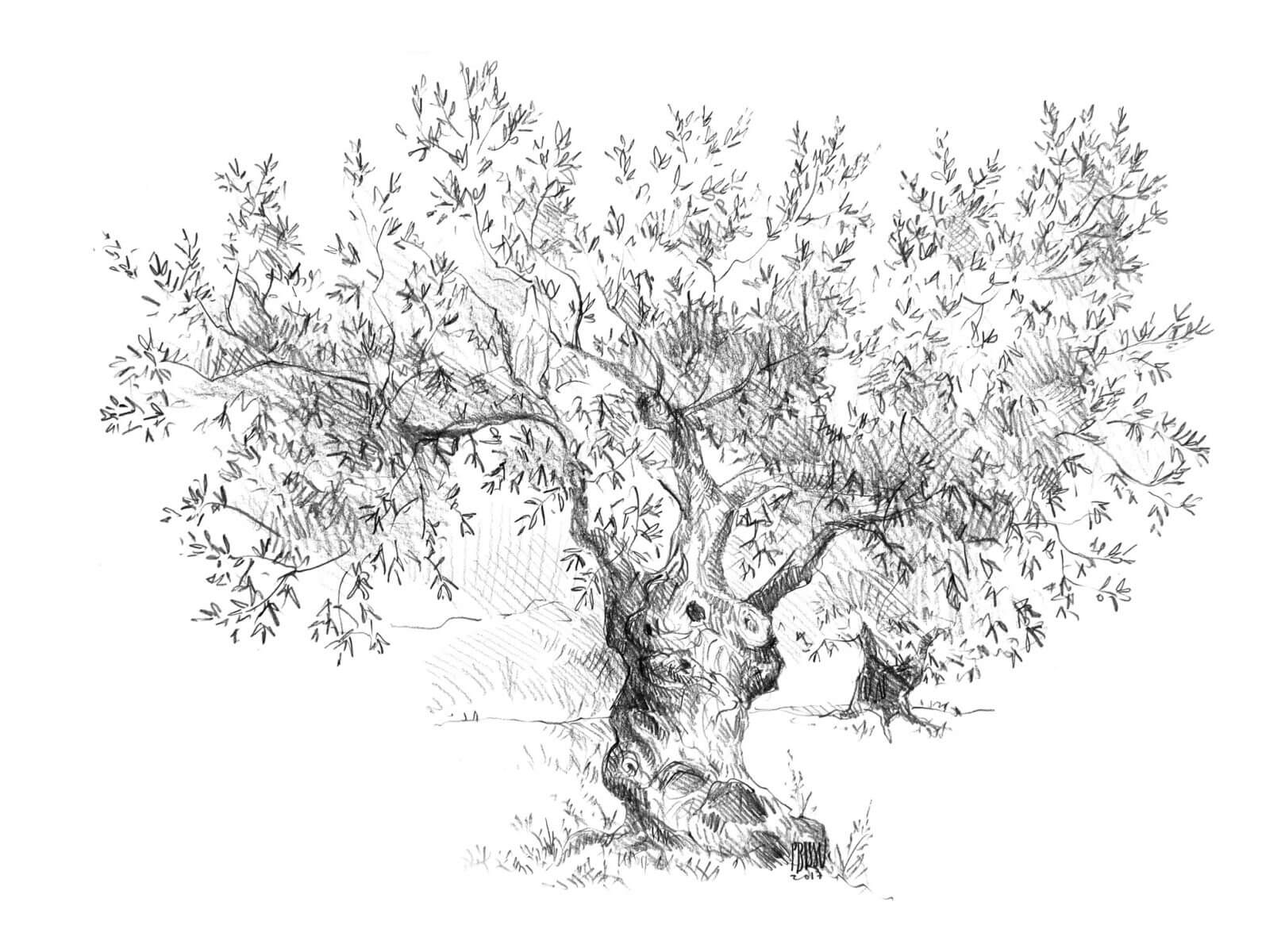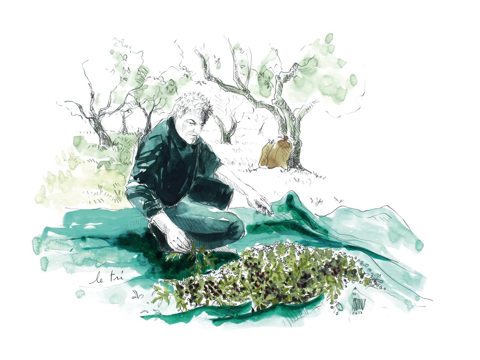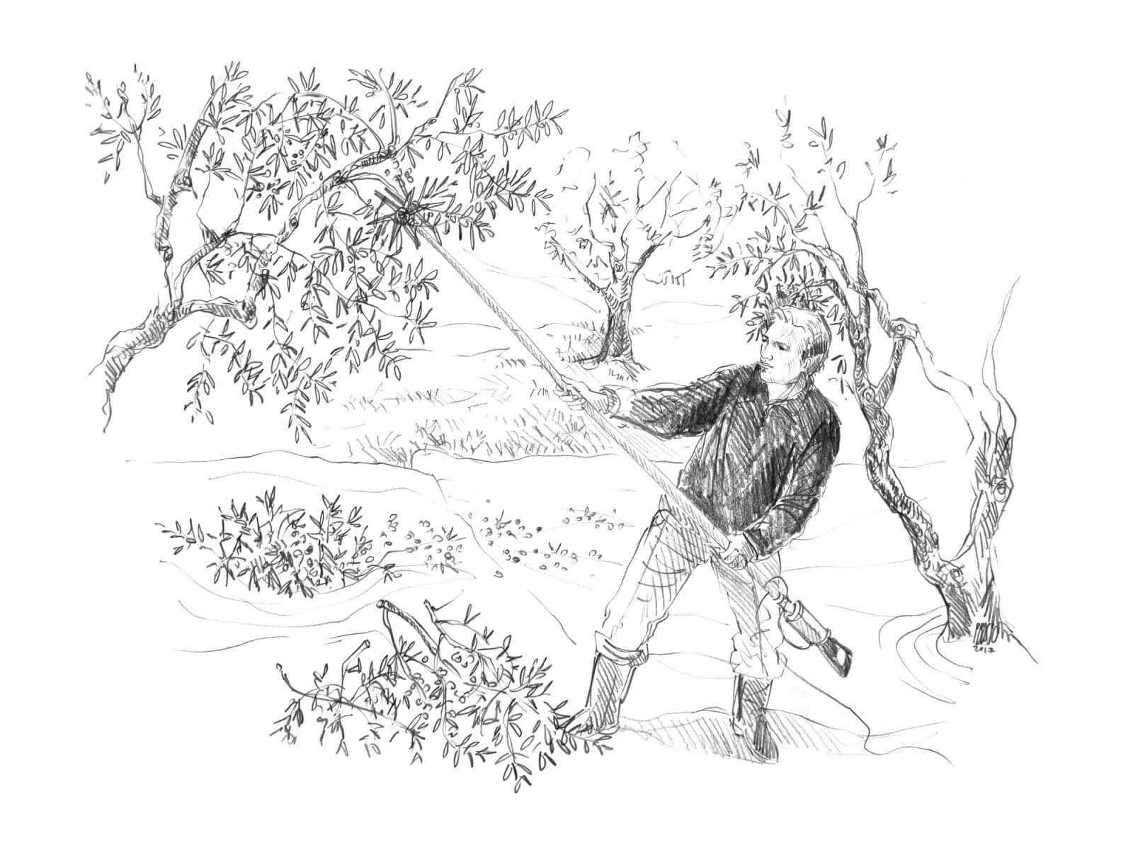 Dessins NatureLa récolte des olives au domaine des Trois Tortues