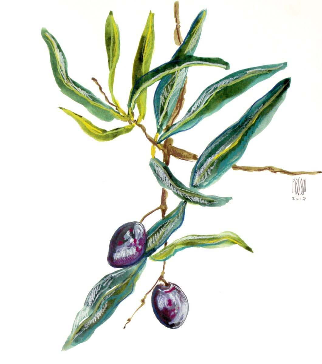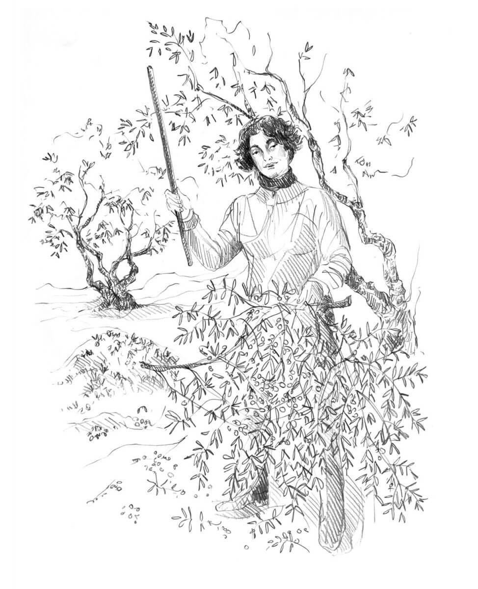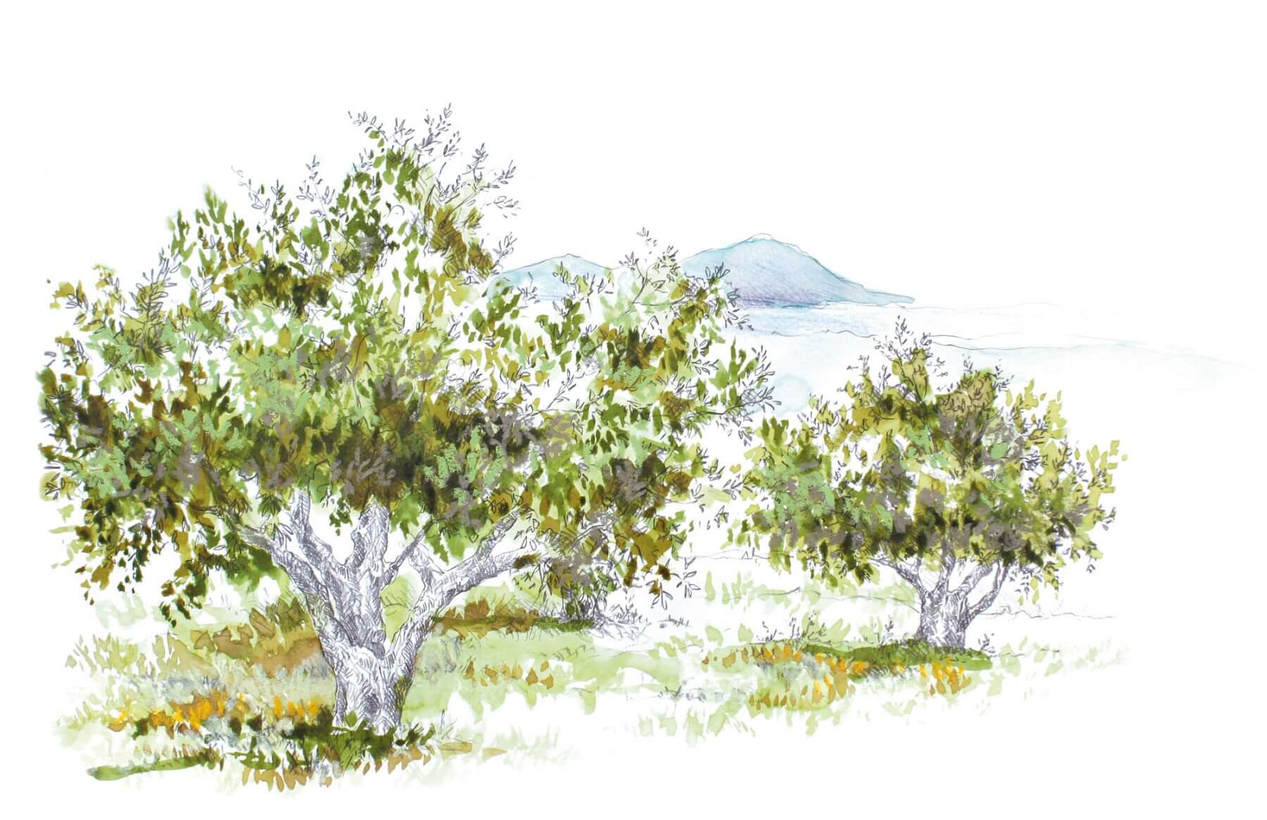 Dessins NatureLa récolte des olives au domaine des Trois Tortues