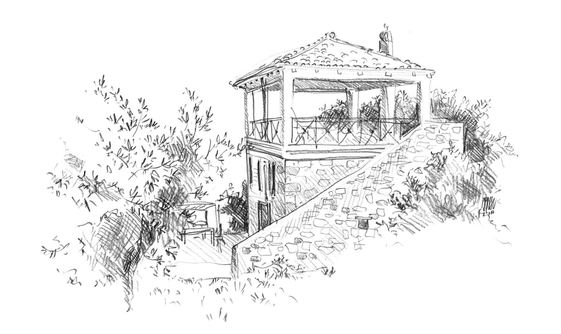 L’automne est froid cette année en Grèce. Marc et Evi Parmantier-Siougari ont déjà fait presser une partie des olives. Ils m’attendent ce week-end pour finir avant les premières pluies. Je rassemble dans ma petite voiture mes encres, fusains, pastels et appareil photo pour les rejoindre à Méthoni, village côtier niché dans le sud du Péloponnèse.