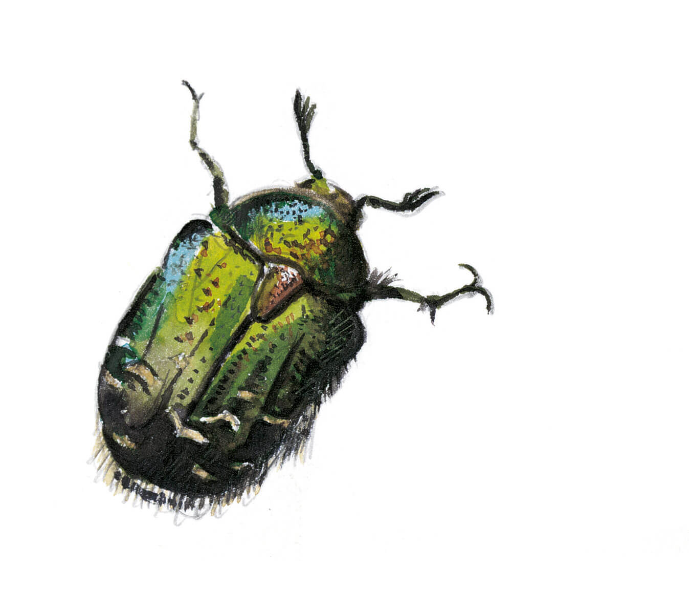 La cétoine y roule sa carapace depuis un moment. Les pattes empêtrées de pollen, elle semble incapable de décoller.