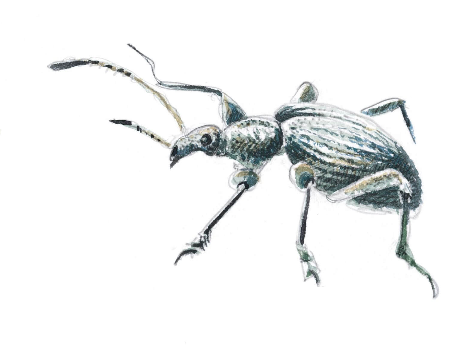 Son cousin le charançon est plus prudent. Il évite les ombelles et balade son rostre entre les feuilles. Le myrtil ne fera qu’une rapide incursion sur un corymbe pour y tremper sa trompe. Le nectar ne semble pas au goût du papillon déjà envolé. Et puis il y a ces minuscules moucherons qui volent sur place les pattes pendantes. Hésitants, ils approchent des fleurs par à-coups. Ne vont-ils jamais se poser ?