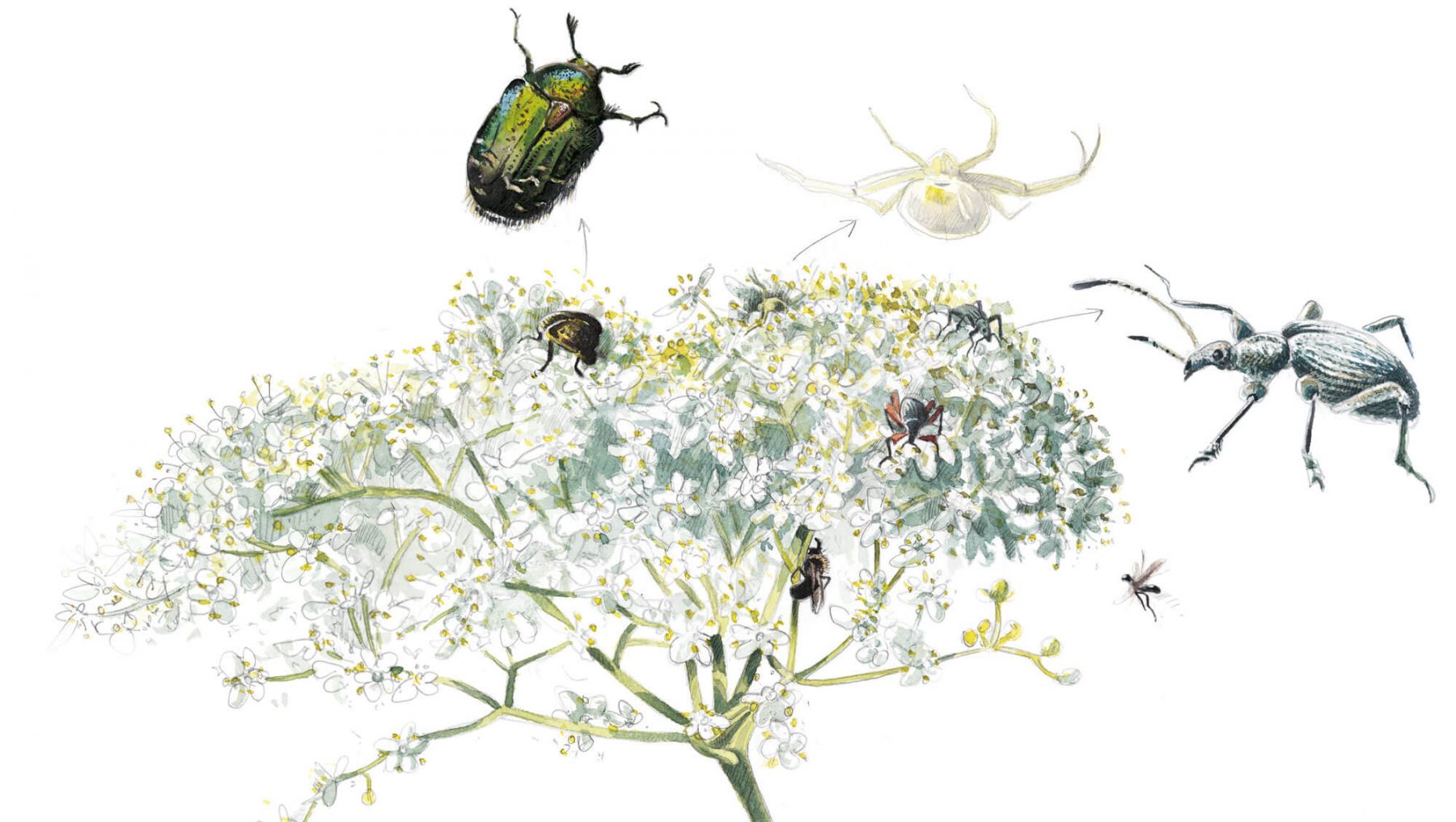 Beaucoup d’invertébrés gravitent autour de notre arbre. Mais la plupart ne font qu’y passer. Il y a quelques années, un Anglais a compté les insectes mangeurs de plantes en visite sur différents arbustes entre avril et octobre. Il en dénombra 95 sur le sureau noir contre 454 sur l’églantier et 1799 sur la viorne lantane. Pour les insectes, le sureau n’est pas spécialement bon à manger. L’arbre contient des composés proches du cyanure, la vicianine et la sambunigrine, qui donnent aux feuilles leur odeur caractéristique. Seules quelques petites bêtes parviennent à digérer le poison au point de se nourrir exclusivement de cette plante.