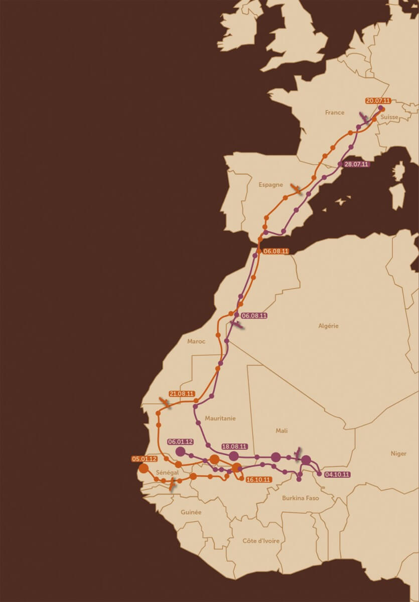 Pour ce faire, trois jeunes oiseaux ont été équipés en juin 2011 de sacs à dos un peu magiques de 22 grammes contenant chacun une balise Argos. Installées par le scientifique Adrian Aebischer, celles-ci permettent via satellite la localisation de leur porteur presque au mètre près ! Les noms des trois milans : Kundera, Salam et Milou. Hélas, Kundera n'a pas survécu à la période très dangereuse qui suit l'envol du nid. Une carte détaille le premier voyage transcontinental de Salam et Milou. Commentée sur son blog par Adrian Aebischer, cette carte vous permet de suivre le périple de nos deux héros.