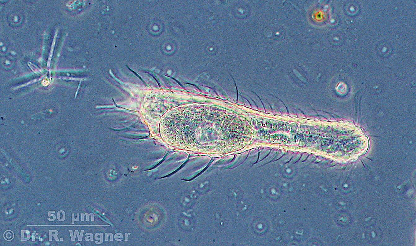 En milieu aquatique, les corps sont soumis à divers courants ainsi qu'à la force de gravité qui les attire vers le fond. S'ils dérivent sans attaches ni moteur autonome, ils risquent de se perdre dans des profondeurs sombres et froides ou d'arriver dans des zones trop pauvres en nutriments. Grâce aux poils, des myriades de nageurs velus sont capables d'ajuster en permanence leur position. Les plus petits, membres du règne bactérien, sont souvent munis d'un ou plusieurs flagelles qu'ils font tourner sur un axe : oui, les bactéries ont inventé la roue ! Quant aux cellules isolées des protistes, elles filent à toute allure ou tournoient. Enfin, de plus imposantes et complexes bestioles, crustacés ou vers par exemple, rament à l'aide de pales ciliées.
