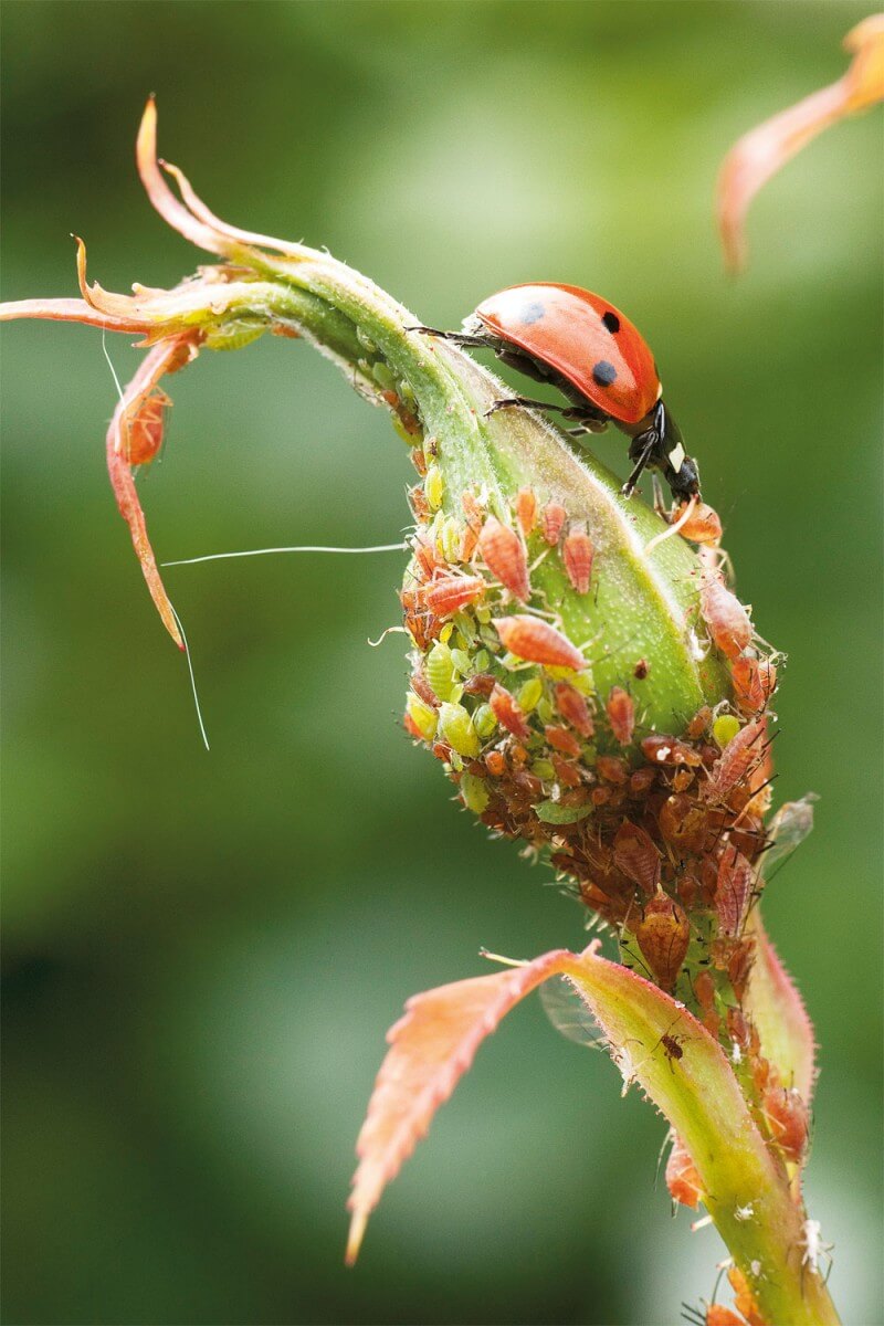 Les pucerons Un rosier en bonne santé peut supporter vaillamment des attaques temporaires de pucerons. « Si un rosier très envahi donne des signes de faiblesse, aspergez ses branches avec un jet d'eau. Cela suffit à éjecter les pucerons. Du savon noir dilué ou un sel de potasse font également l'affaire. Par contre, ne traitez pas les plantes qui sont peu infestées : elles souffrent peu et la présence des pucerons permet aux prédateurs, comme les coccinelles, de se multiplier » , assure Alain Tschanz. Les larves de syrphes, petites mouches en costume de guêpe, et les chrysopes font également des ravages dans les rangs de ces indésirables. En bonne logique, plus le jardin est proche de l'état naturel, plus il abritera d'insectes et d'oiseaux susceptibles de limiter les dégâts des ravageurs.