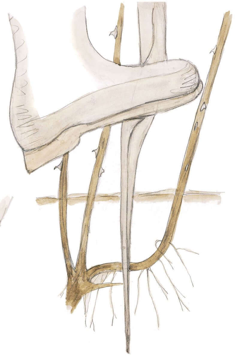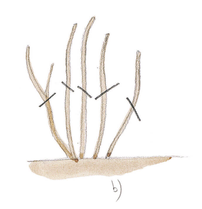 Dans le cas des rosiers remontants arbustifs, on rabat ensuite la ramure de 50 %...