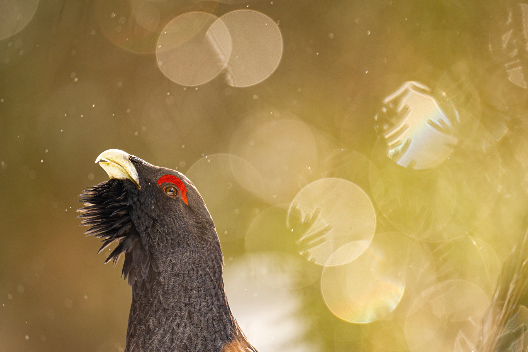 « J’ai repéré un couple nicheur de gorgebleues à miroir roux dans une haute vallée des Alpes suisses. Le mâle s’est élancé dans des vols chantés répétés depuis le toit en pierre d’une maison. Alors qu’il s’apprêtait à atterrir, j’ai déclenché mon appareil. Le miroir caractéristique et la bavette bleue s’harmonisaient parfaitement avec les teintes environnantes. »