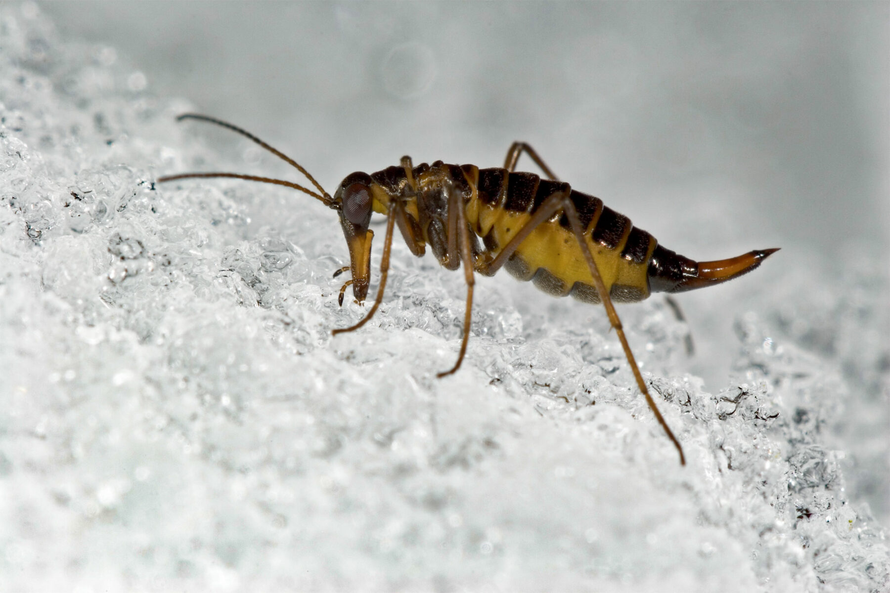 Elle ressemble à une petite mouche-scorpion de 4 mm... sans ailes ! Comme elle, la puce des neiges appartient à l’ordre des mécoptères. Malgré son nom, elle n’a rien d’une puce, si ce n’est qu’elle peut faire des bonds atteignant 30 cm, soit 75 fois sa taille ! Contrairement à la plupart des insectes, Boreus hyemalis, qui peut vivre jusqu’à 1 600 m d’altitude, n’est active qu’en hiver, d’octobre à mars.
