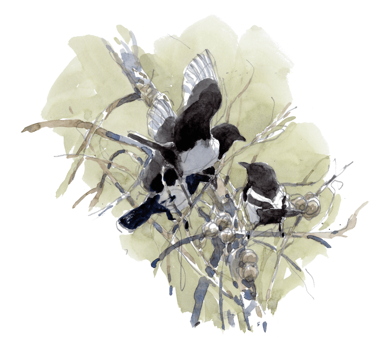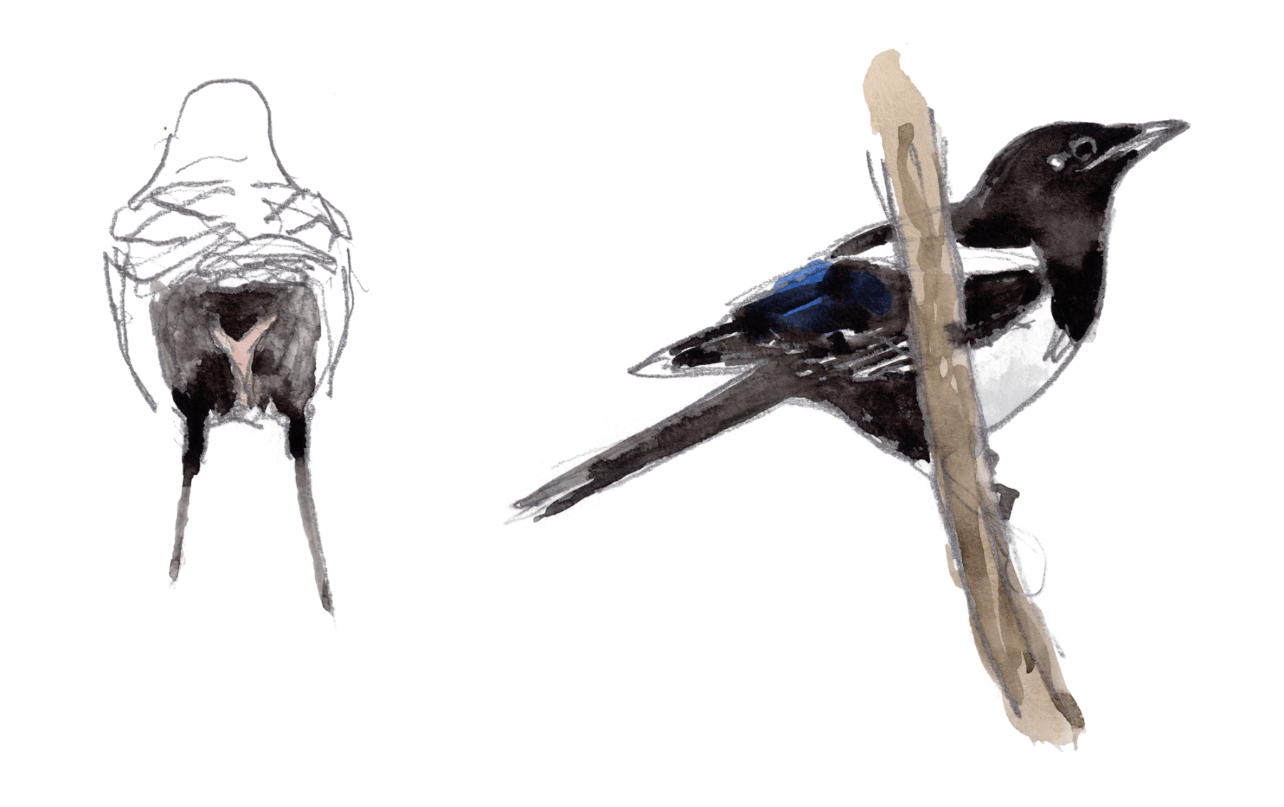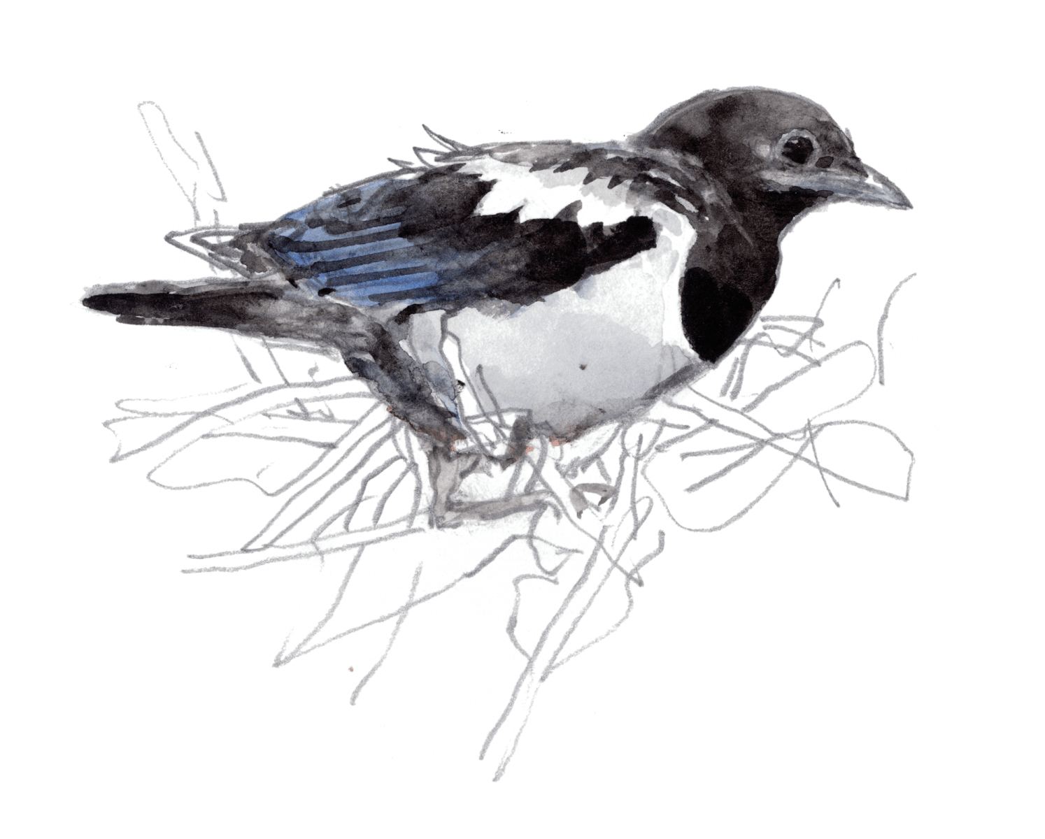 Dessins NatureLa pie est un oiseau sédentaire et sociable