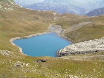 - Depuis le col, il vaut la peine de descendre admirer le lac de Lona (5) et son glacier rocheux, voire de s'y baigner.