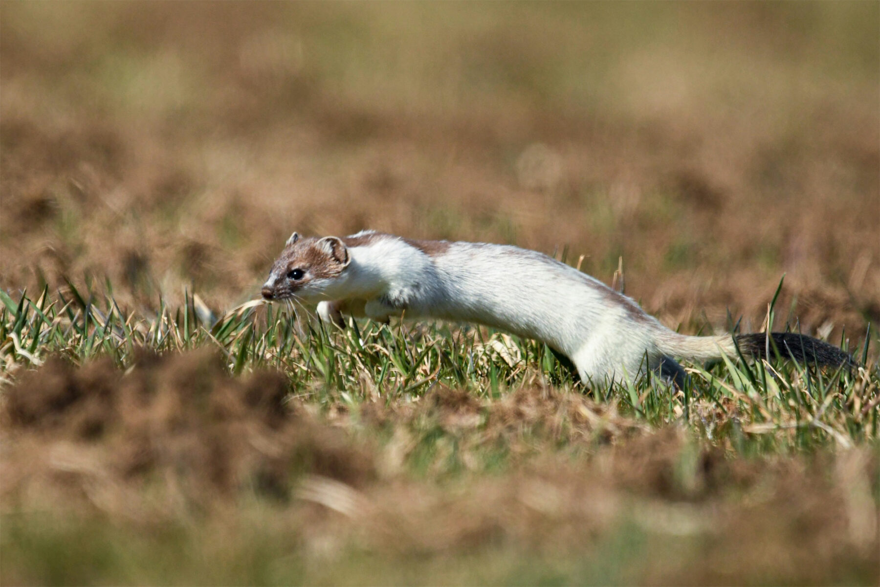 J’ai souvent vu des buses qui observaient le mammifère en chasse. J’imagine que les oiseaux de proie mettraient volontiers le petit carnivore à leur menu, mais je n’ai jamais observé de prédation directe. En revanche, ce n’est pas le premier vol de proie dont je suis témoin. Quand les campagnols sentent l’hermine à leurs trousses dans leurs galeries, ils bondissent à l’extérieur comme des bouchons de champagne dans l’espoir de la semer. Ils se font alors parfois cueillir par les prédateurs à plumes qui les attendent.