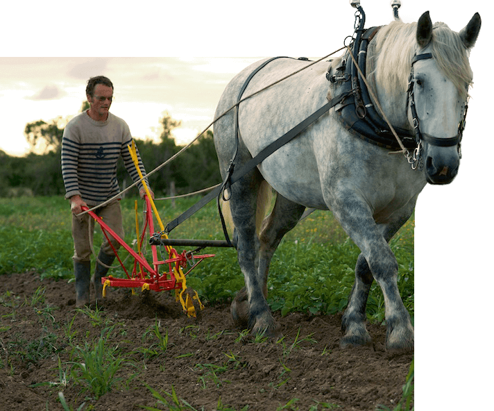 C’est un plaisir de travailler au sein d’un espace naturel exceptionnel, où nichent de nombreux oiseaux dont certains sont rares et menacés. En complément à mon activité d’éleveur, je cultive aussi deux hectares de légumes biologiques de plein champ, principalement des pommes de terre et des oignons. Pour alléger le labeur, deux juments percheronnes m’aident dans le travail de la terre.