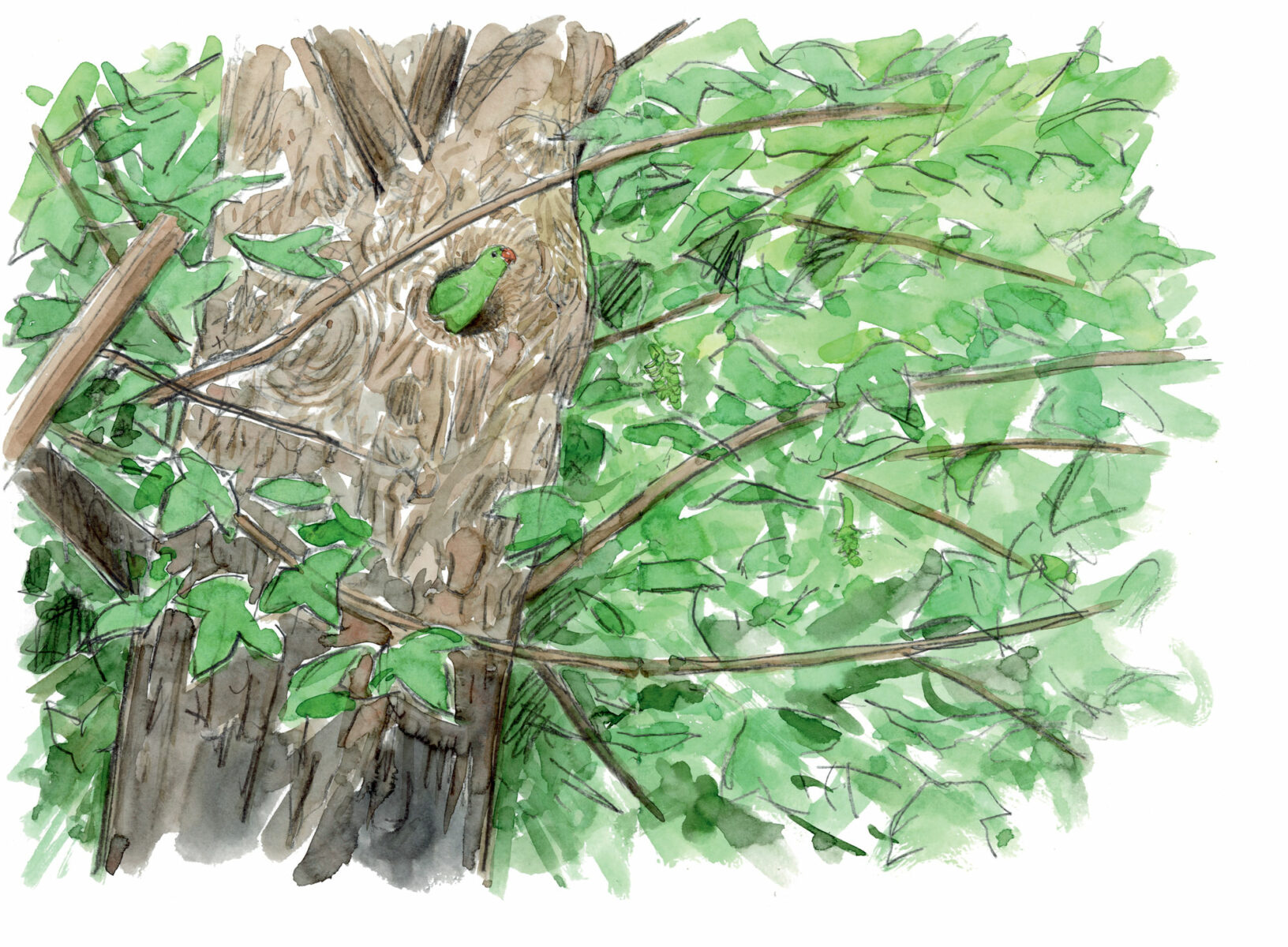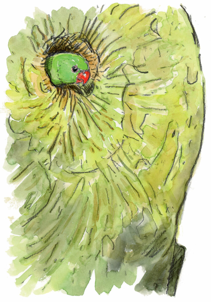 Mais voilà, Homo sapiens rechigne à perdre la main sur le cours des choses. Ni une ni deux, soupçonnant une concurrence avec la faune locale, il a collé une étiquette discriminante sur celle qu’il admirait tant lorsqu’elle était enfermée. Espèce exotique envahissante (EEE). Cette triple voyelle stigmatise à jamais cette expatriée et ses semblables. Pire, Psittacula krameri est inscrite au top 100 des EEE les plus dangereuses au monde. Et pour cause, elle menacerait des oiseaux ou des mammifères affublés d’une étiquette plus glorieuse telle que protégée, vulnérable, indigène… Les interactions entre espèces sont inévitables, c’est même un pléonasme écologique.